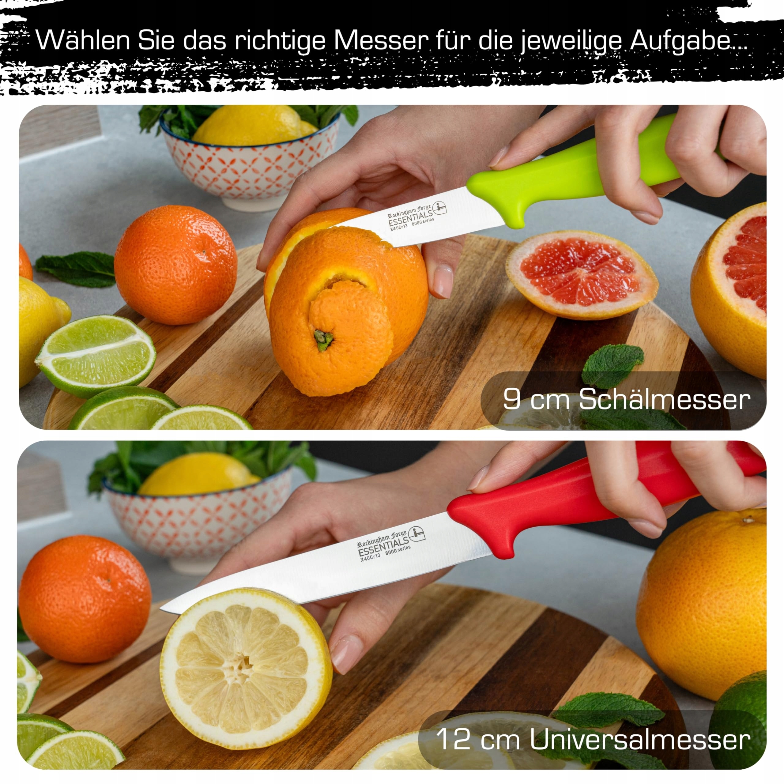 ROCKINGHAM FORGE Zestaw Noży 2 Sztuki 9cm i 12cm Zielony Czerwony Uchwyt | Premium Supply