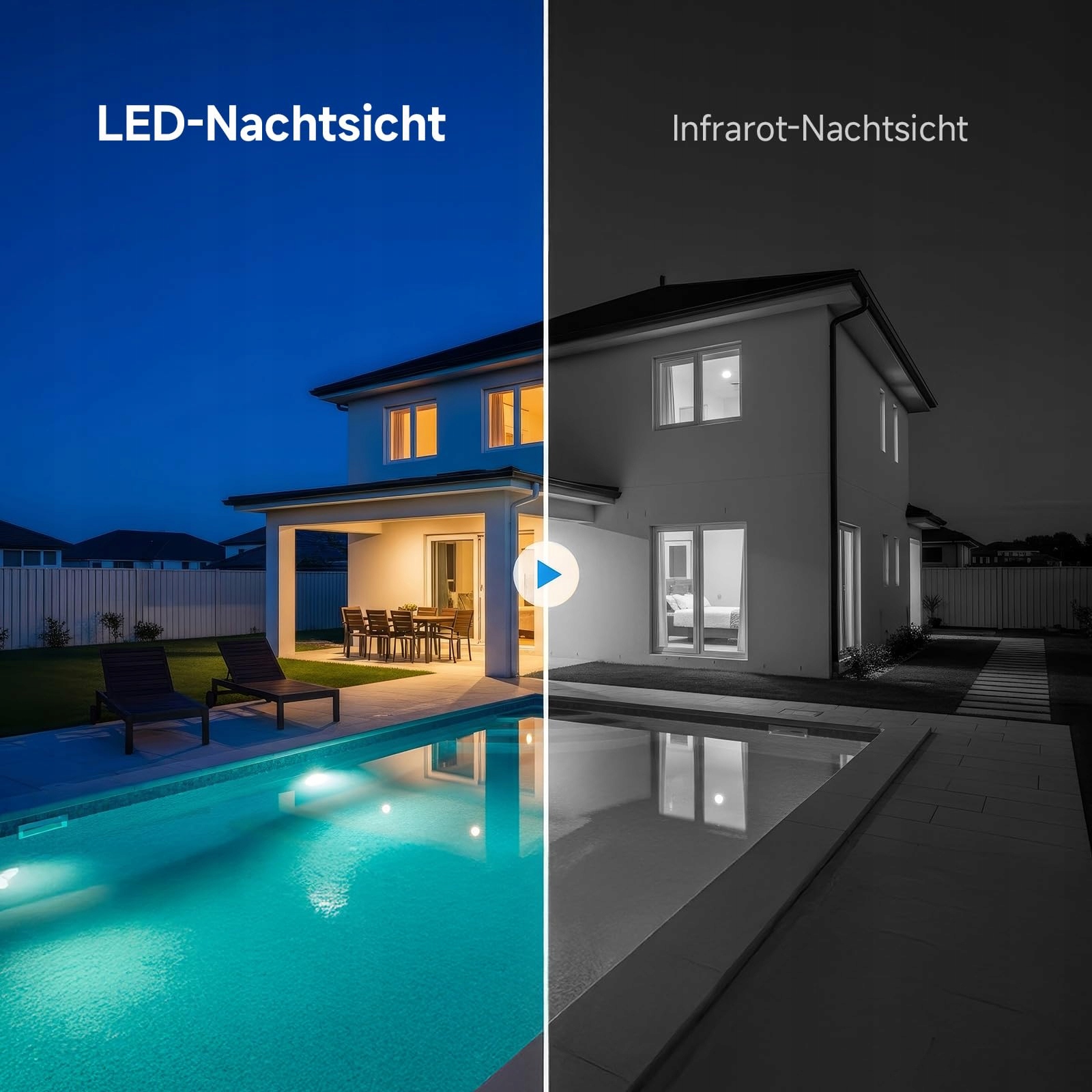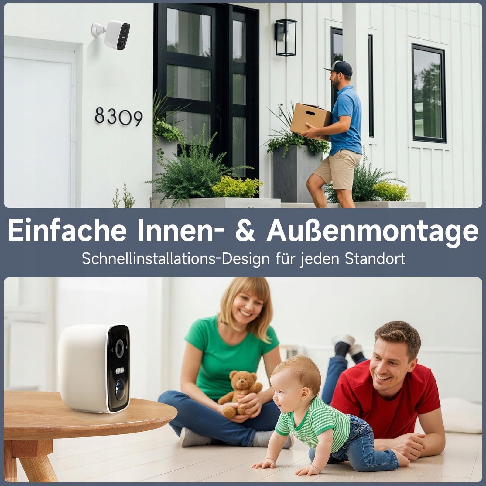 Wysoka rozdzielczość: Nasza kamera do monitoringu na zewnątrz dostarcza dzięki rozdzielczości 2K wyjątkowo wyraźne nagrania, które uchwycą każdy szczegół. Niezależnie od dnia czy nocy, zawsze otrzymujesz nieskazitelną jakość obrazu.