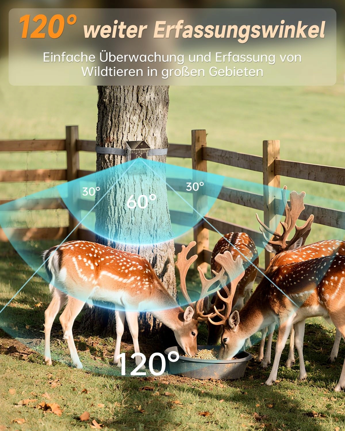 【Czas reakcji 0,3 s & kąt detekcji 120°】Trzy wysoce czułe czujniki PIR z kątem detekcji 120° kamery myśliwskiej bez trudu monitorują duże obszary. Z czasem reakcji 0,3 sekundy i zdjęciami seryjnymi (1-10 zdjęć) uchwycisz nawet błyskawiczne ruchy i nieprzewidziane sceny. Unikalny kamuflaż kamery idealnie wtapia się w otoczenie, dzięki czemu nie zakłócasz zwierzętom spokoju podczas nagrywania
