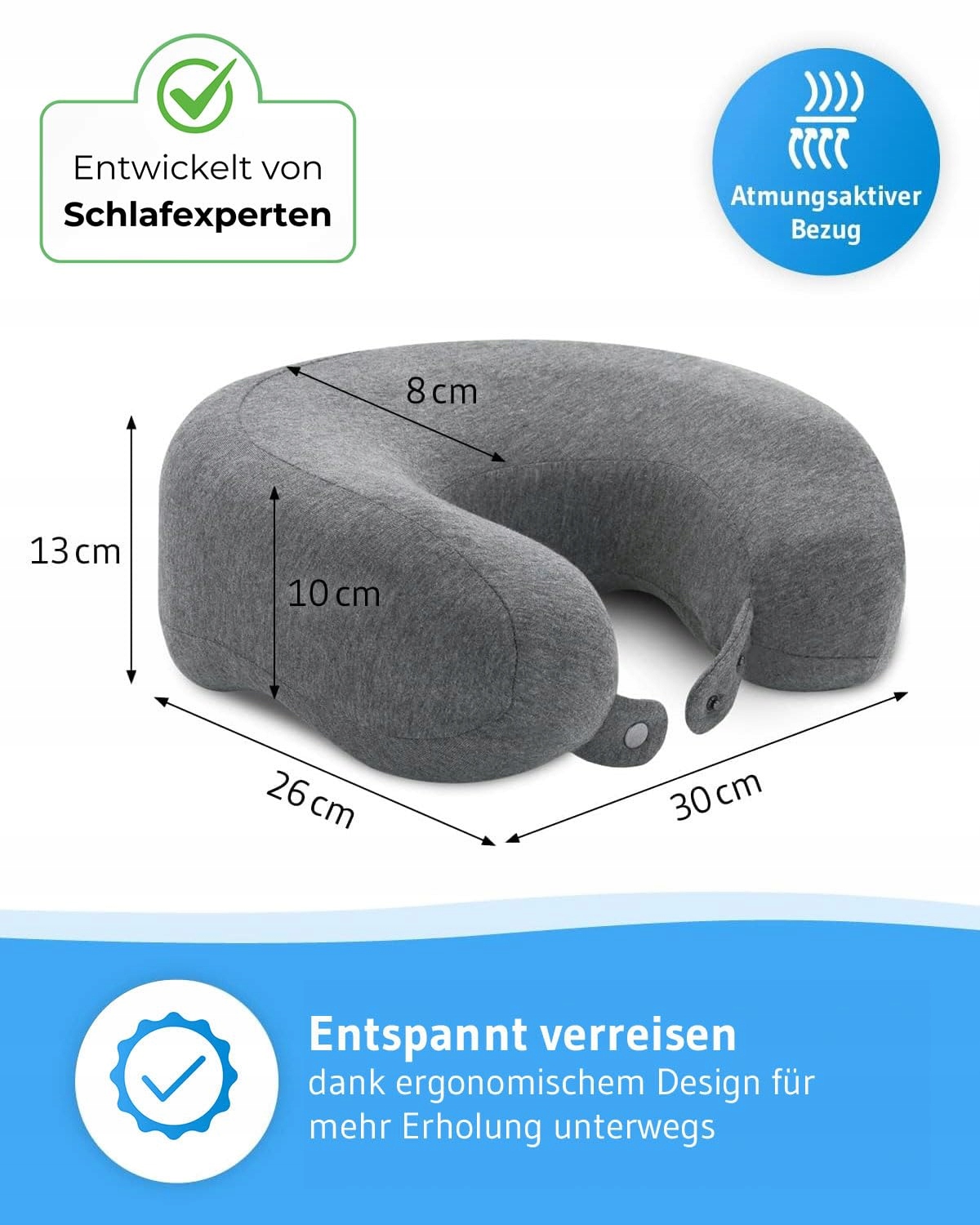 Poduszka na szyję do samolotu i samochodu | Ortodontyczna poduszka podróżna z ergonomicznej pianki memory | Poduszka na szyję RONDAR z pokrowcem | Zapobiega napięciom mięśniowym | Oddychająca poduszka i poduszka na szyję