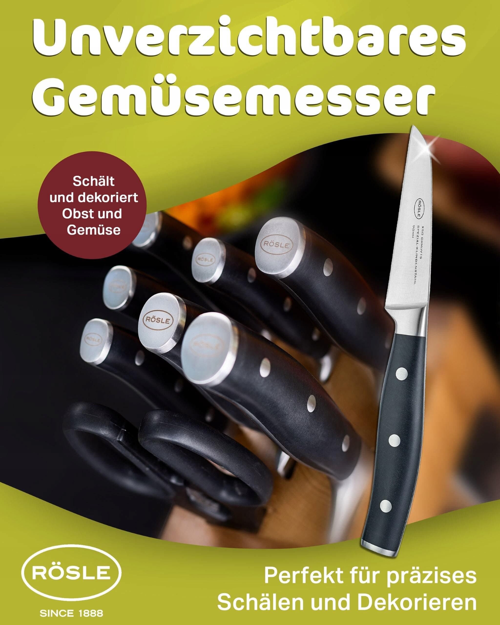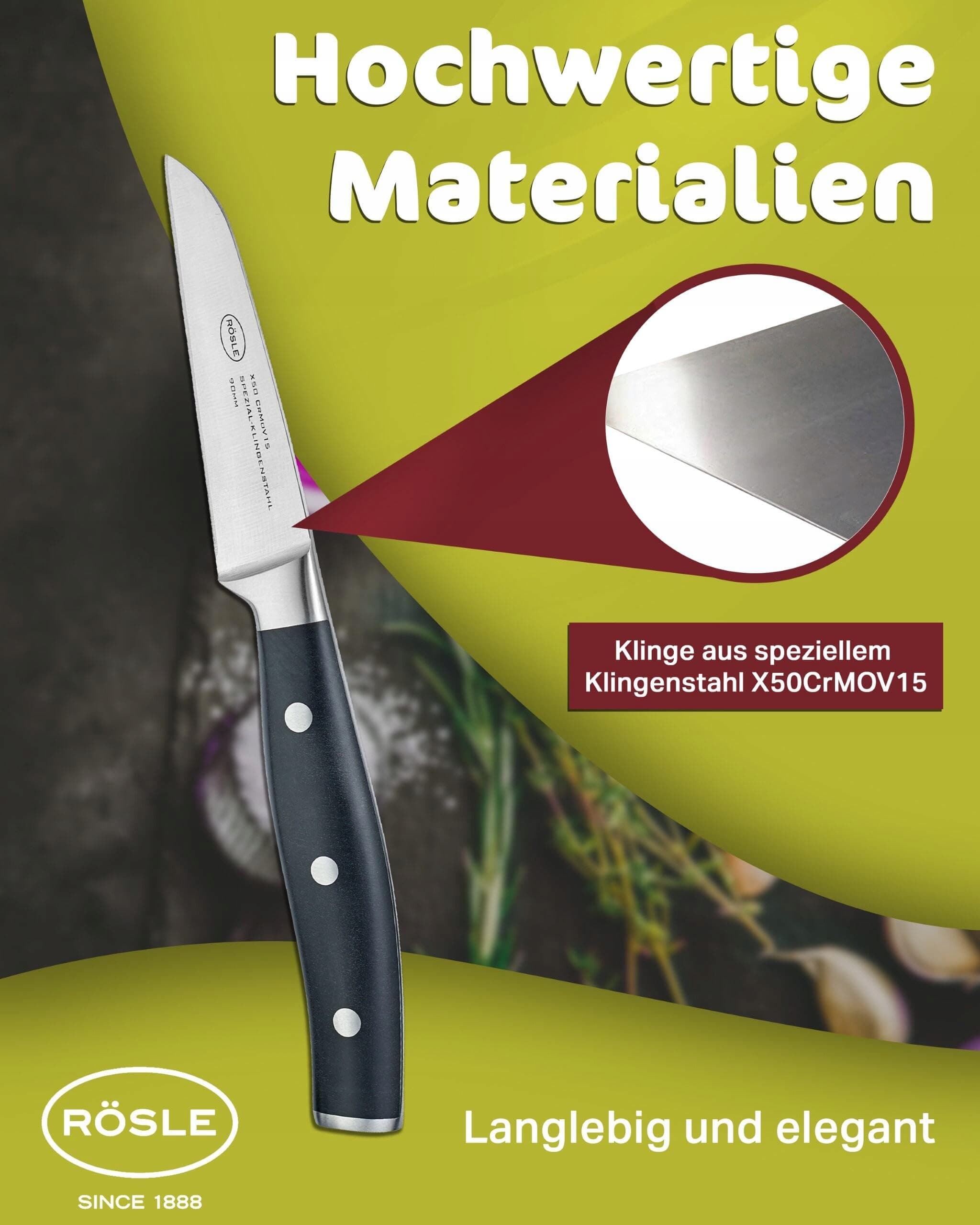 PRECYZJA I ERGONOMICZNY KOMFORT: Nóż do warzyw RÖSLE Tradition z klingą o długości 9 cm idealnie nadaje się do krojenia i czyszczenia różnych warzyw oraz do sałatek owocowych. Ten ostry nóż kuchenny jest niezbędny w codziennym życiu.