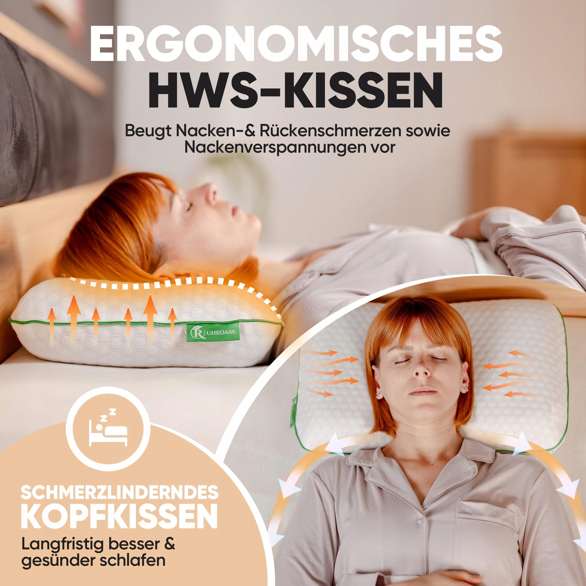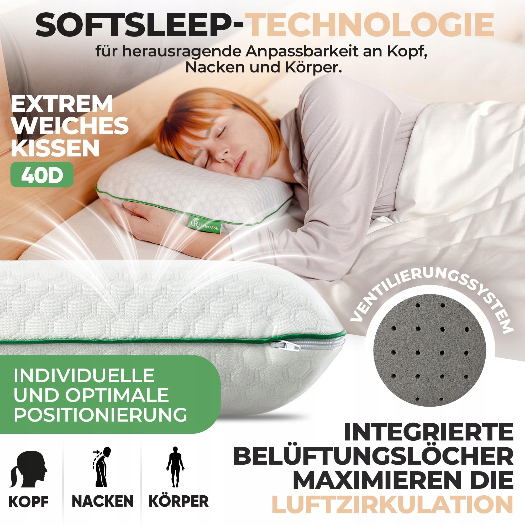 🍃 𝐌𝐀𝐋𝐎 𝐒𝐍𝐔, 𝐖𝐈𝐄𝐋𝐀 𝐑𝐄𝐆𝐄𝐍𝐄𝐑𝐀𝐂𝐉𝐀 - Nawet przy niewielkiej i nieregularnej ilości snu ergonomiczna poduszka RUHEOASE zapewnia wysoką jakość odpoczynku w łóżku. Technologia SoftSleep integruje kanały wentylacyjne w miękkiej jak chmurka poduszce, które skutecznie wspomagają oddychalność i krążenie krwi. Doświadcz szybkiego wejścia w głęboki sen.