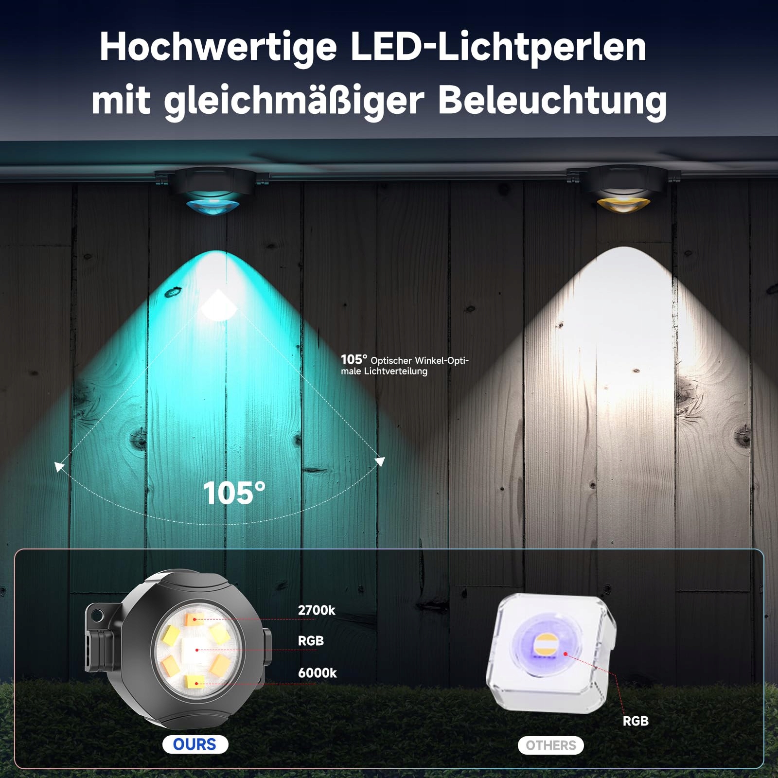 【Smart APP i pilot zdalnego sterowania łatwa kontrola】Stałe oświetlenie zewnętrzne steruj swoim oświetleniem wygodnie za pomocą aplikacji na smartfona (z funkcją rysowania!) lub pilota zdalnego sterowania. Dostosuj kolory, jasność i tryby indywidualnie – także zdalnie.