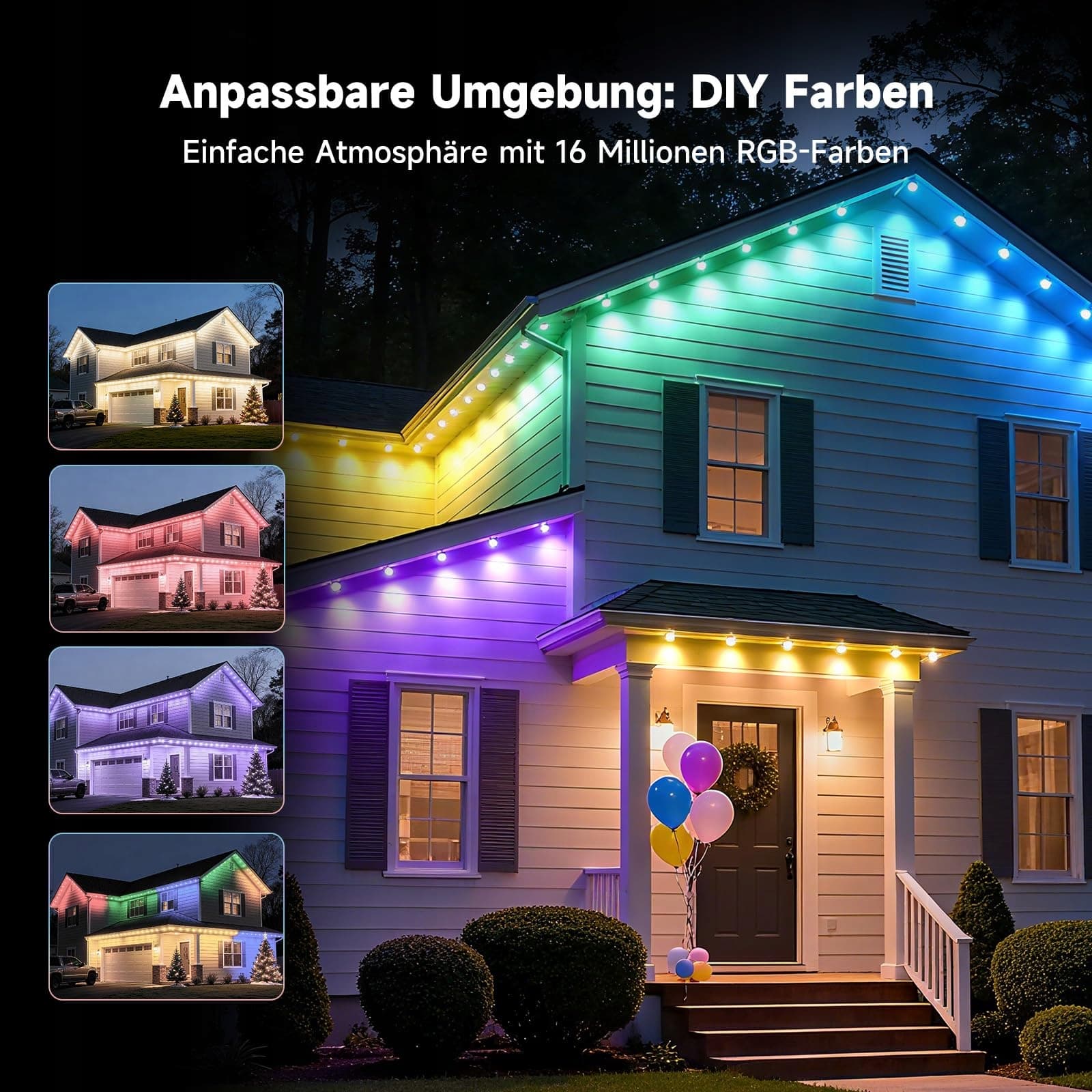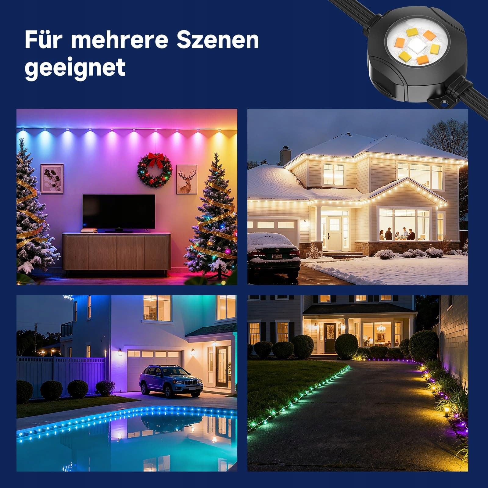 【Każda dioda LED sterowana osobno i ściemnialna】Stałe oświetlenie zewnętrzne po raz pierwszy: każdą diodę LED można sterować indywidualnie! Twórz unikalne wzory świetlne i efekty. Dodatkowo ściemnialne dla idealnej jasności – delikatna atmosfera lub jasne oświetlenie świąteczne.