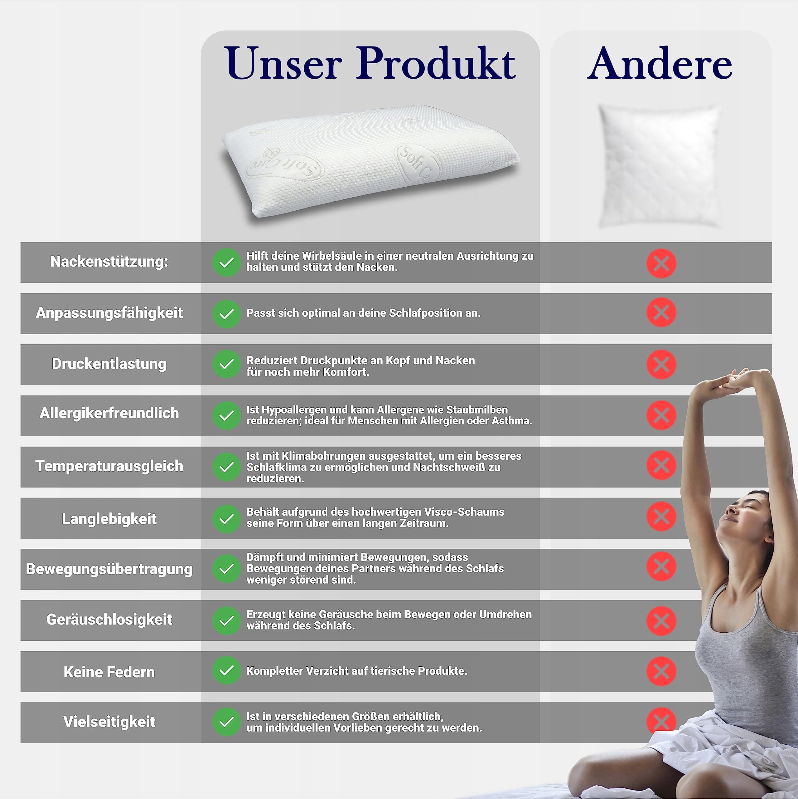 Sabeatex® ortopedyczna poduszka visco (80x40x15 cm) - poduszka memory foam do podparcia szyi dla śpiących na plecach i na boku - ergonomiczna poduszka do spania