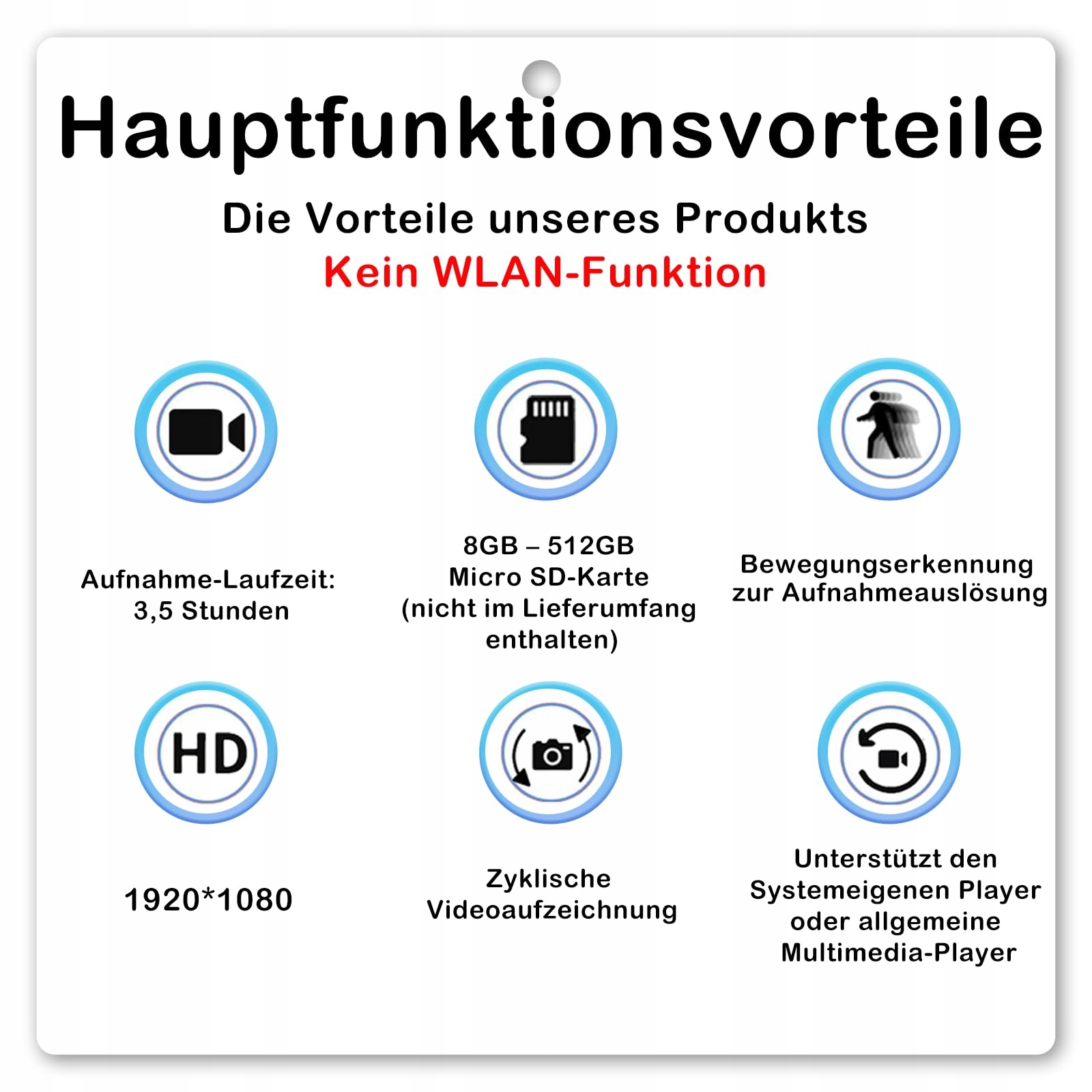 【Niewielkie zapotrzebowanie na pamięć】 Ta kamera nie posiada WIFI i może być podłączona do komputera przez USB (nie jest kompatybilna ze smartfonami). Musisz samodzielnie kupić oryginalną kartę SD (w formacie FAT32) – obsługiwane są maksymalnie 128 GB, zalecane jest użycie 32 GB. (Jeśli po włączeniu czerwona dioda LED miga dwukrotnie, a następnie gaśnie po włożeniu karty SD, lub jeśli karta SD po podłączeniu przez USB lub czytnik kart do komputera nie jest prawidłowo odczytywana, zalecamy wymianę karty SD.)