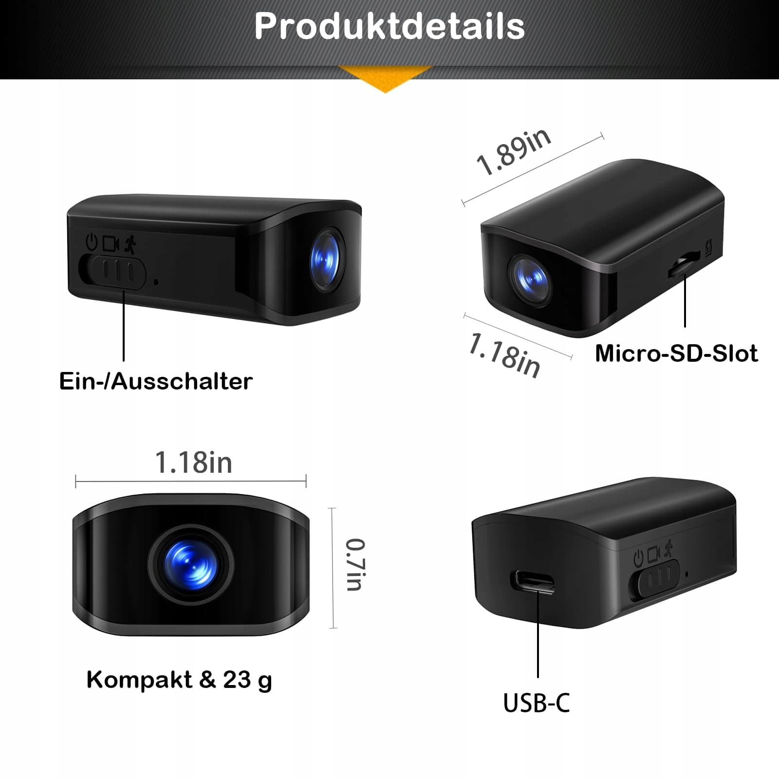 SABOSOWA Mini kamera kamera do monitoringu – HD 1080P-niania/kamera biurowa – kamera bezpieczeństwa z detekcją ruchu, czujnikiem grawitacyjnym i funkcją noktowizji Bez WiFi.