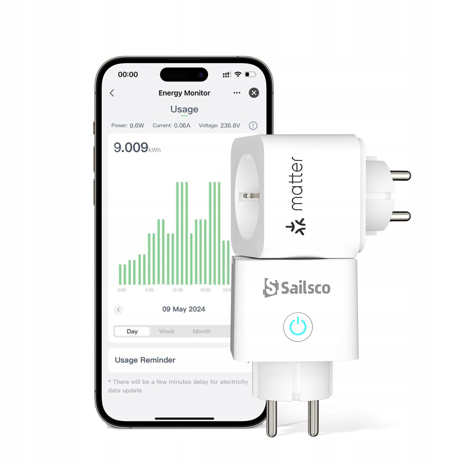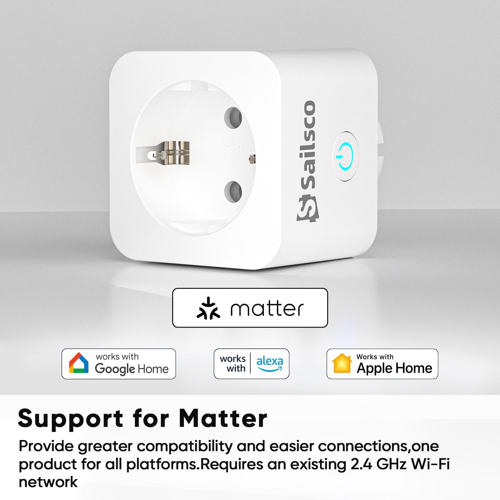 Sailsco Smart Plug Matter Smart Gniazdko,Typ F Monitorowanie energii,ZużycieAutomatyczne przydzielanie energii,Smarte Gniazdko Smart Life Sterowanie głosowe,Zdalny dostęp,Alexa i Google,16A,2 sztuki