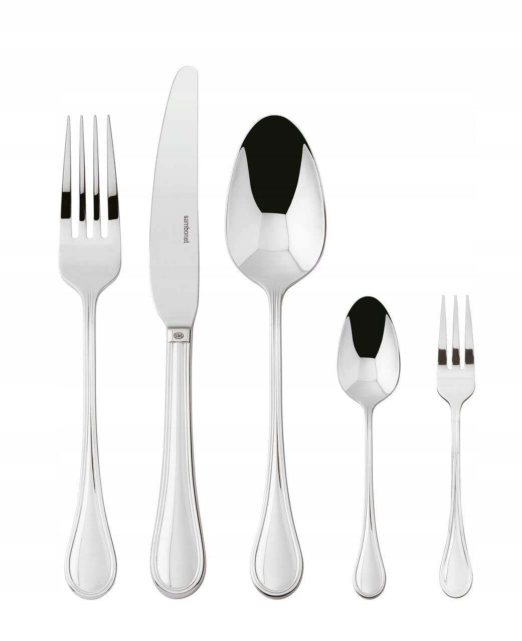 Serwis stołowy dla 6 osób. Zestaw 30-elementowy składa się z: 6 widelców, 6 łyżek, 6 noży, 6 widelczyków do deserów oraz 6 łyżeczek do herbaty