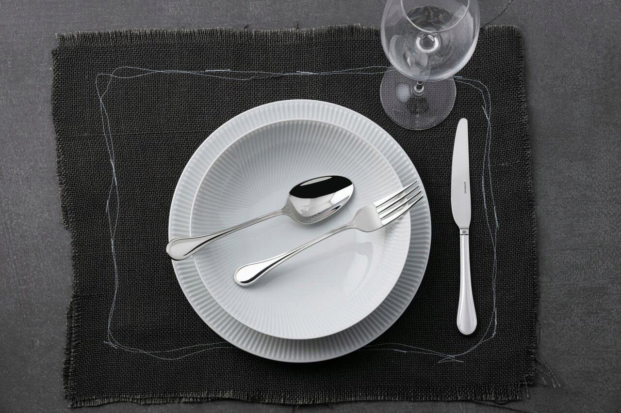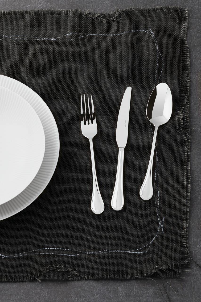 Elegancki i pełen uroku. Dzięki podwójnie tłoczonemu gwintowi oraz oryginalnemu znakowi Sambonet na uchwycie noża kolekcja Royal wyraża doskonałą jakość wykonania marki i podkreśla jej dziedzictwo. Wykonany z wysokiej jakości stali nierdzewnej 18/10 i nadaje się do zmywarki