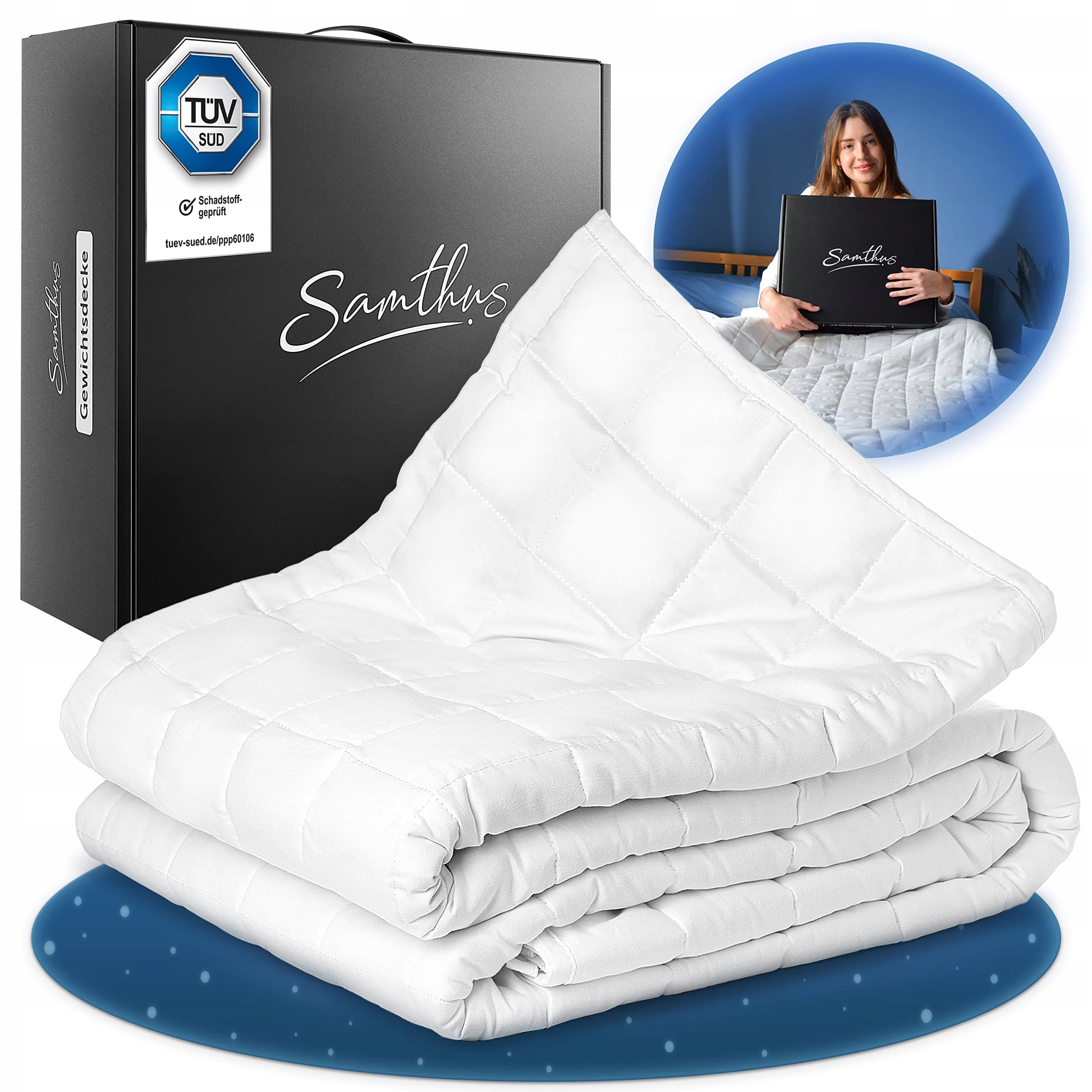 Samthus Koc obciążeniowy 155 x 220 cm, 9 kg, certyfikat TÜV Süd, koc relaksacyjny, 100% bawełna, ciężki koc antystresowy i terapeutyczny, lepszy sen z naszą ciężką kołdrą – koc ważony