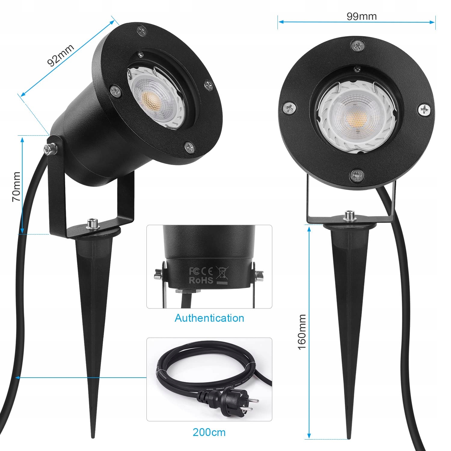 ⚡ 【Łatwy montaż】Ten reflektor LED GU10 do trawnika można łatwo wbić w ziemię za pomocą metalowego kolca. 2-metrowy kabel zasilający z standardową wtyczką EU; Plug & Play, łatwy w instalacji i użytkowaniu dla każdego.