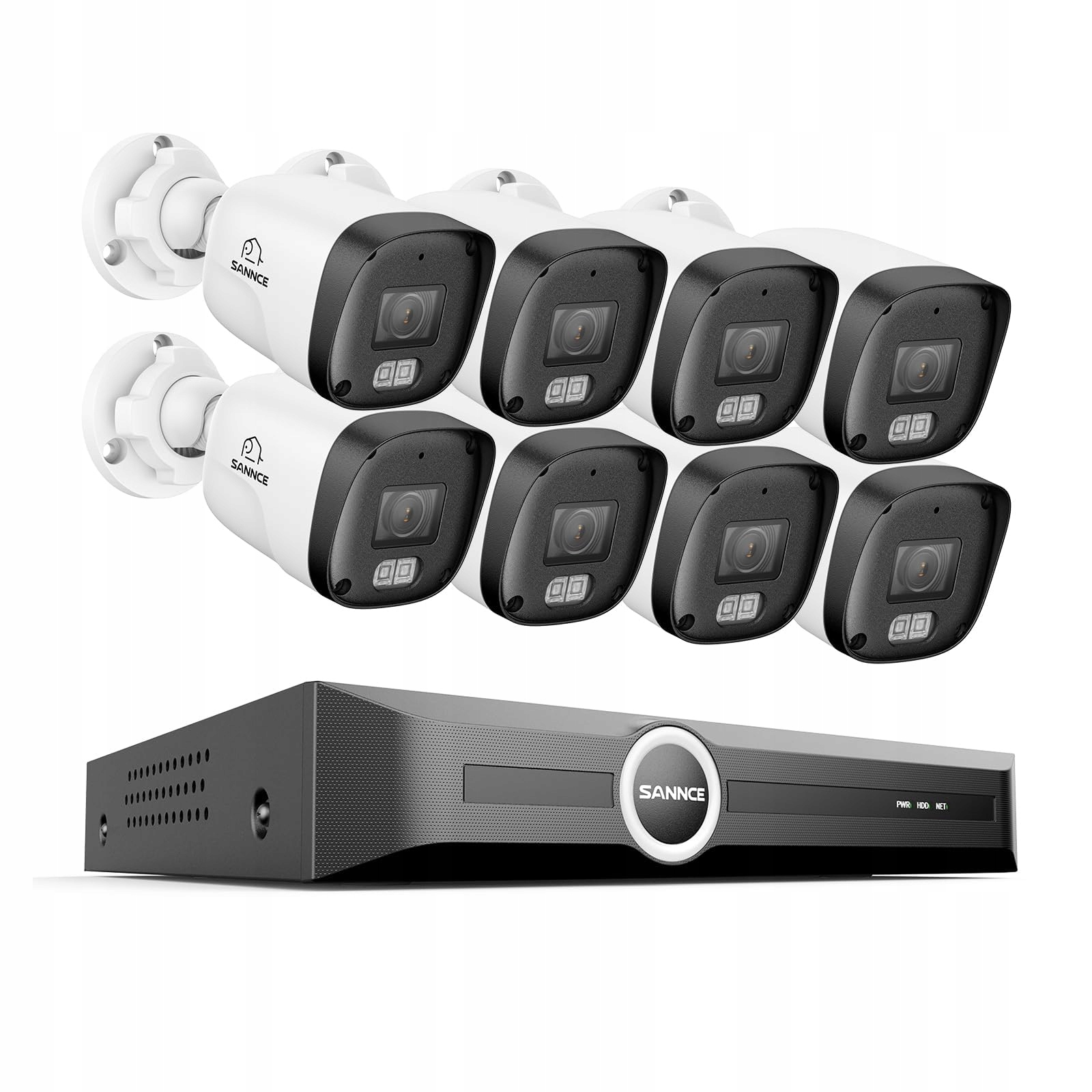 Zestaw kamer SANNCE POE 5MP 8CH NVR+8 * 3MP wodoodporna kamera z inteligentnymi diodami IR, wykrywaniem ruchu, alarmem w aplikacji, widzeniem nocnym do 30 metrów