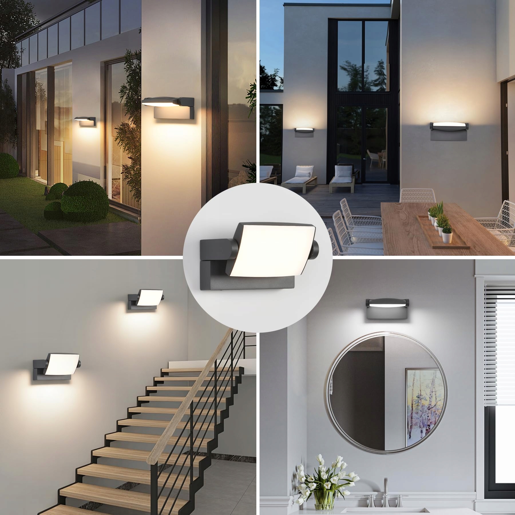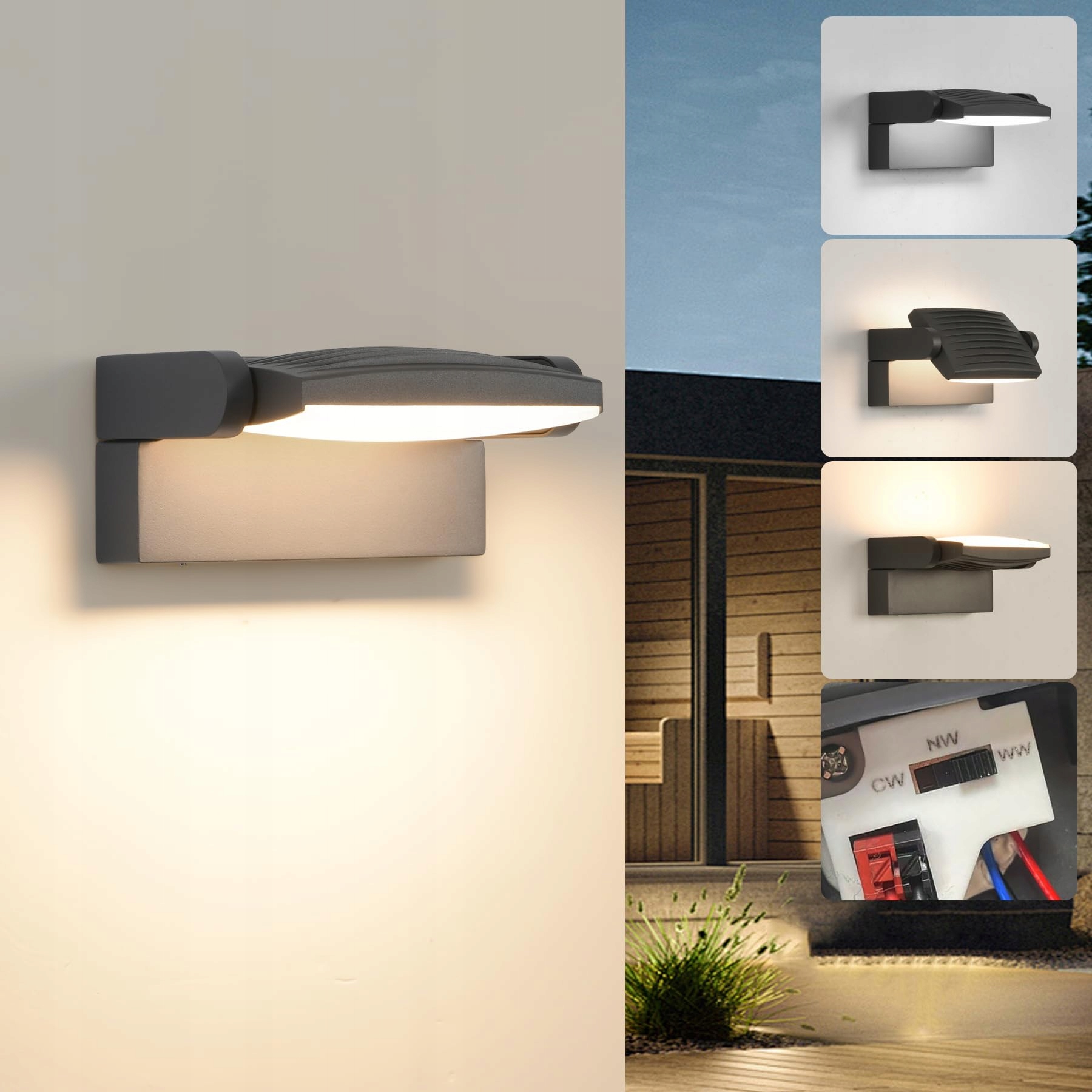 SANSHI Lampa zewnętrzna 12W LED, 3000K 4000K 6500K Kinkiet do wnętrz i na zewnątrz, wodoodporna IP65 lampa zewnętrzna na ścianę, kinkiet z panelem obracanym o 350°, lampa zewnętrzna na taras i balkon, ciemnoszara