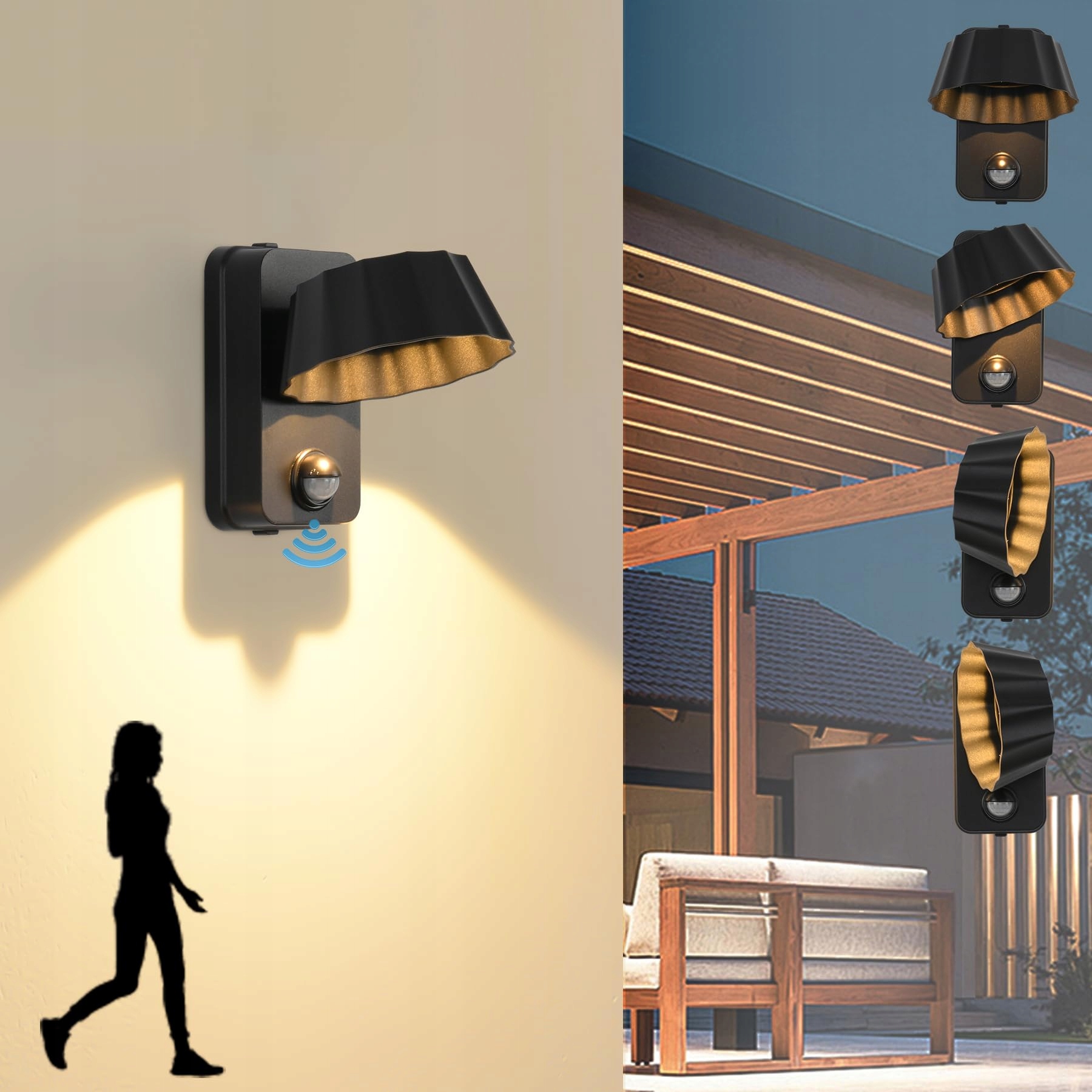 【Funkcja czujnika ruchu】1. Lampa zewnętrzna z czujnikiem ruchu włącza się automatycznie w promieniu do 8 m. 2. Możesz ustawić czujnik światła lampy ściennej tak, aby działał tylko w nocy lub zarówno w dzień, jak i w nocy. 3. Lampa ścienna włącza się automatycznie, gdy ktoś przechodzi obok. Gdy nie ma ruchu, lampa wyłącza się automatycznie (czas wyłączenia można ustawić od 8 sekund do 14 minut).