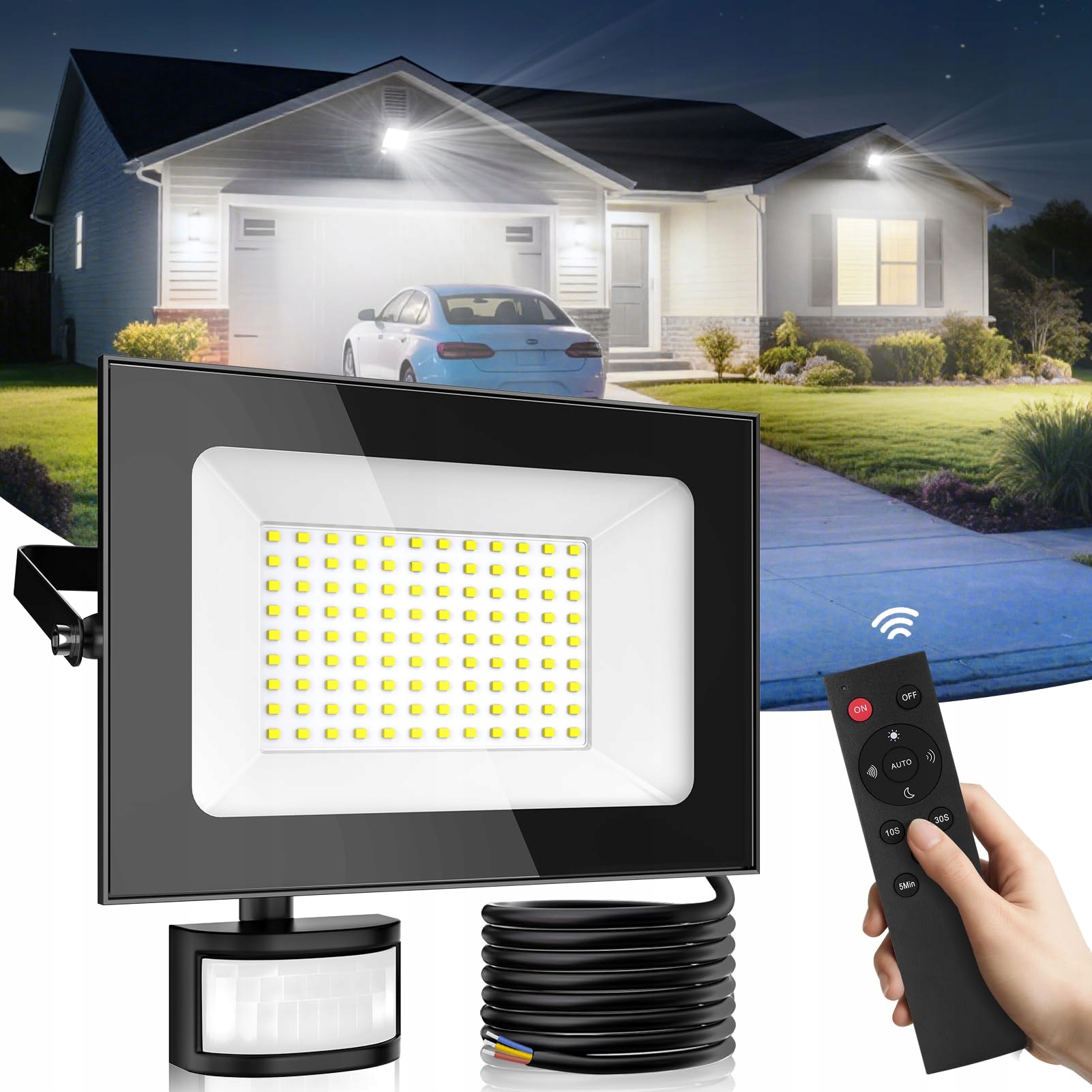 Sararoom LED reflektor z czujnikiem ruchu na zewnątrz, 100W 10000LM LED naświetlacz, 6500K reflektor z pilotem, IP65 wodoodporny reflektor zewnętrzny lampa bezpieczeństwa do ogrodu, garażu, podwórka, ściany