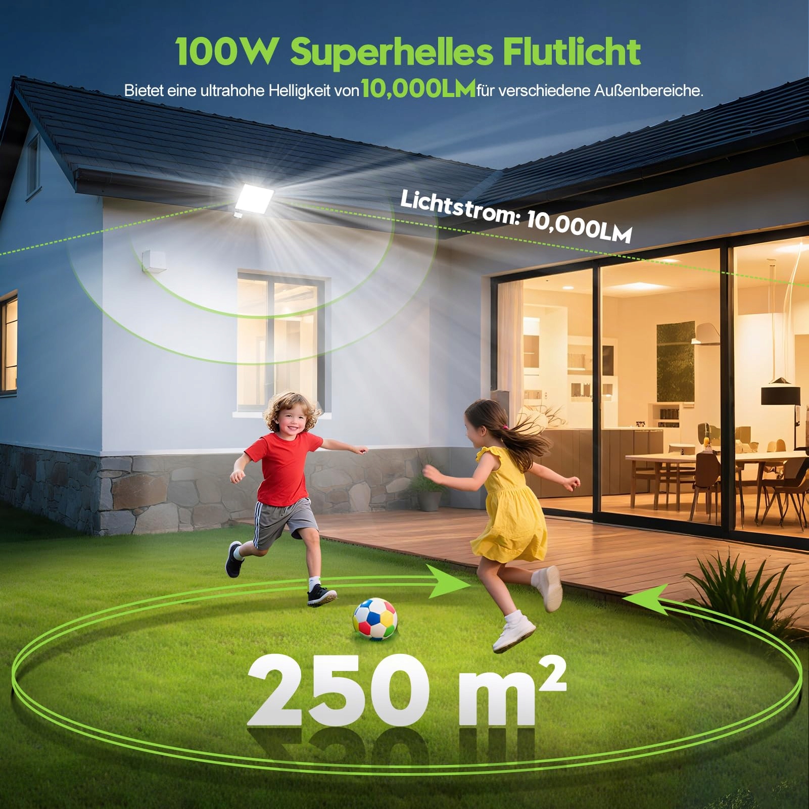 【Naświetlacz z czujnikiem ruchu】 Nasz 100W led reflektor z czujnikiem ruchu na zewnątrz posiada 108 wysokiej jakości diod SMD2835 i zapewnia bardzo jasne oświetlenie o mocy 10 000 lumenów i zimnej białej barwie światła 6500 K. Ponadto zużycie energii może zostać zmniejszone nawet o 80%, dzięki czemu otrzymujesz ekologiczne i energooszczędne rozwiązanie oświetleniowe.