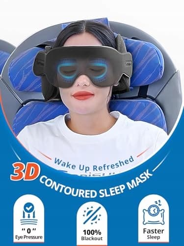 3D-konturowana maska do spania: 100% nieprzepuszczalna dla światła. Bezuciskowy design chroni rzęsy i kontury twarzy oraz zapewnia całkowite zaciemnienie, abyś mógł spać bez zakłóceń.