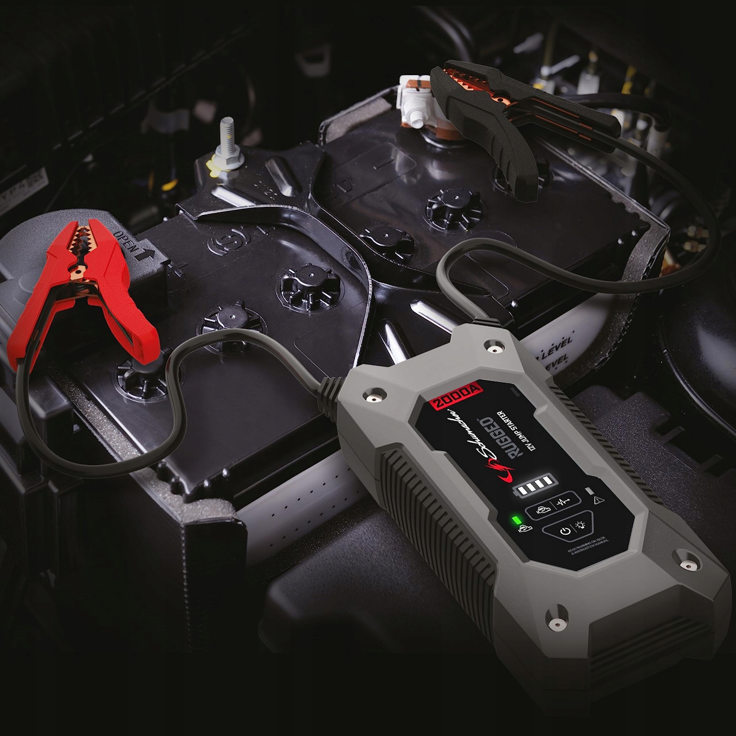 Tryb override: Umożliwia natychmiastowe uruchomienie bez wykrywania akumulatora pojazdu i/lub bez akumulatora. Idealny dla wszystkich silników o pojemności do 8,0 l benzyny i 6,0 l diesla, ze wszystkimi rodzajami akumulatorów 12V. Do 45 uruchomień na jednym ładowaniu