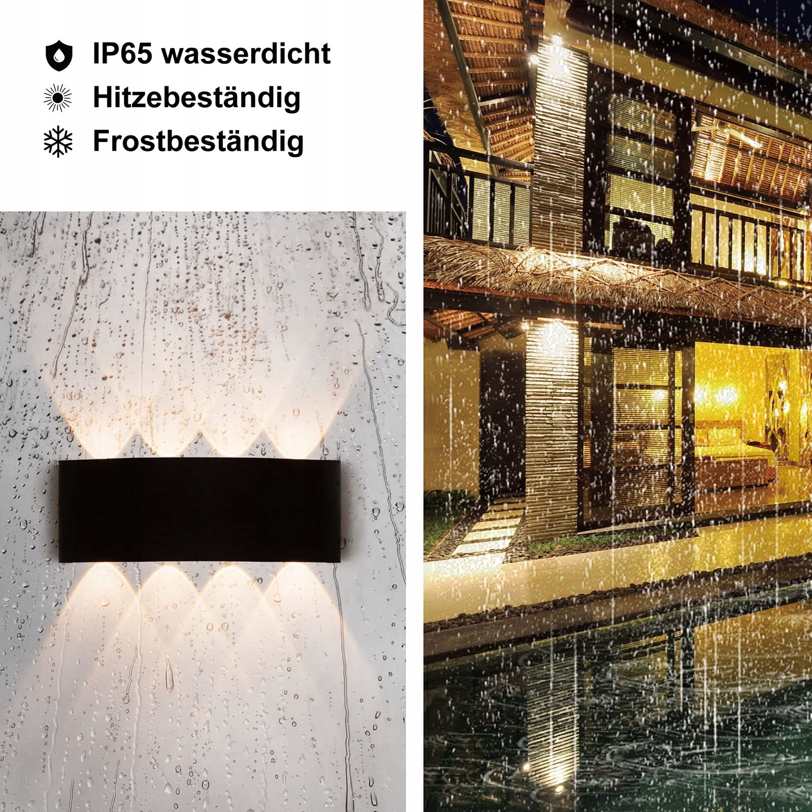 [IP65 Wodoodporna]Wszystkie wejścia elektryczne są uszczelnione gumowymi pierścieniami, które mogą być lepiej wodoodporne i pyłoszczelne. Lampa ścienna jest wodoodporna zgodnie z normą IP65 i może być używana zarówno na zewnątrz, jak i wewnątrz. Ta wodoodporna lampa ścienna LED może być zainstalowana na zewnątrz, takich jak dziedzińce, ściany zewnętrzne, park, ogród itp. Jest również odpowiednia do wnętrz, takich jak salon, sypialnia, kuchnia, łazienka, balkon, korytarz, klatka schodowa, bar, kawiarnia, hotel, galeria.