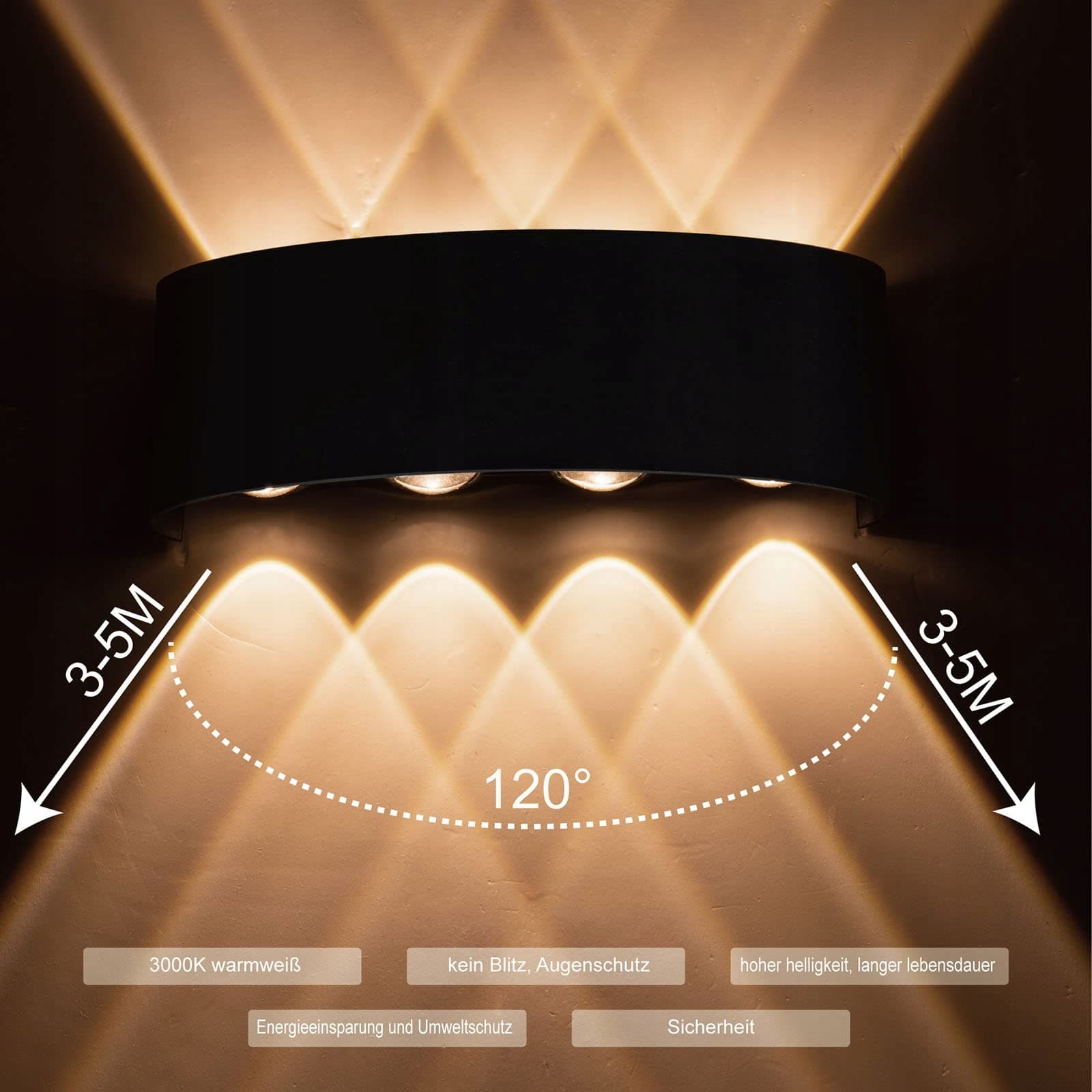 [Super jasna i energooszczędna]Ta 8W 3000K zewnętrzna lampa ścienna LED może zastąpić tradycyjne 200W żarówki, ma zalety wysokiej jasności, wysokiej wydajności świetlnej, długiej żywotności i tak dalej, może zaoszczędzić do 80% energii. Niskie zużycie energii, brak migotania, ochrona oczu. Również oszczędność energii i ochrona środowiska, żywotność do 50000 godzin. z projektem ochrony przed zwarciem, projekt przeciążeniowy, aby zapewnić, że jest absolutnie bezpieczna w użyciu.