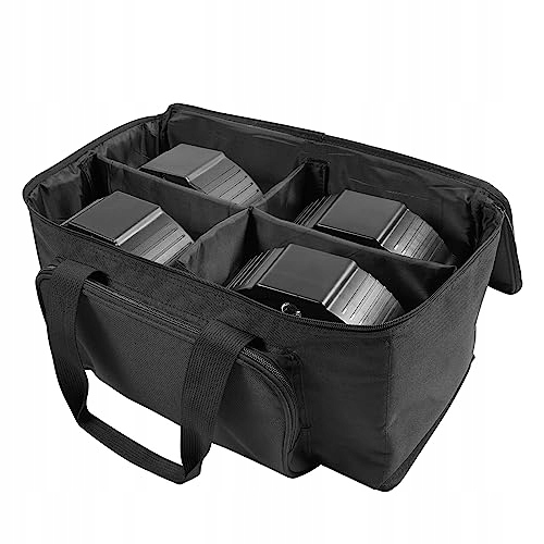 z wodoodporną torbą: Ta torba do przechowywania lampy wykonana jest z wodoodpornego materiału PVC, aby zapewnić, że lampa nie zmoknie. Pasuje do prawie wszystkich LED Par. Do 4 LED Par można bezpiecznie przechowywać i transportować. Przegroda w tym zestawie jest zdejmowana, dzięki czemu można umieścić większe lampy