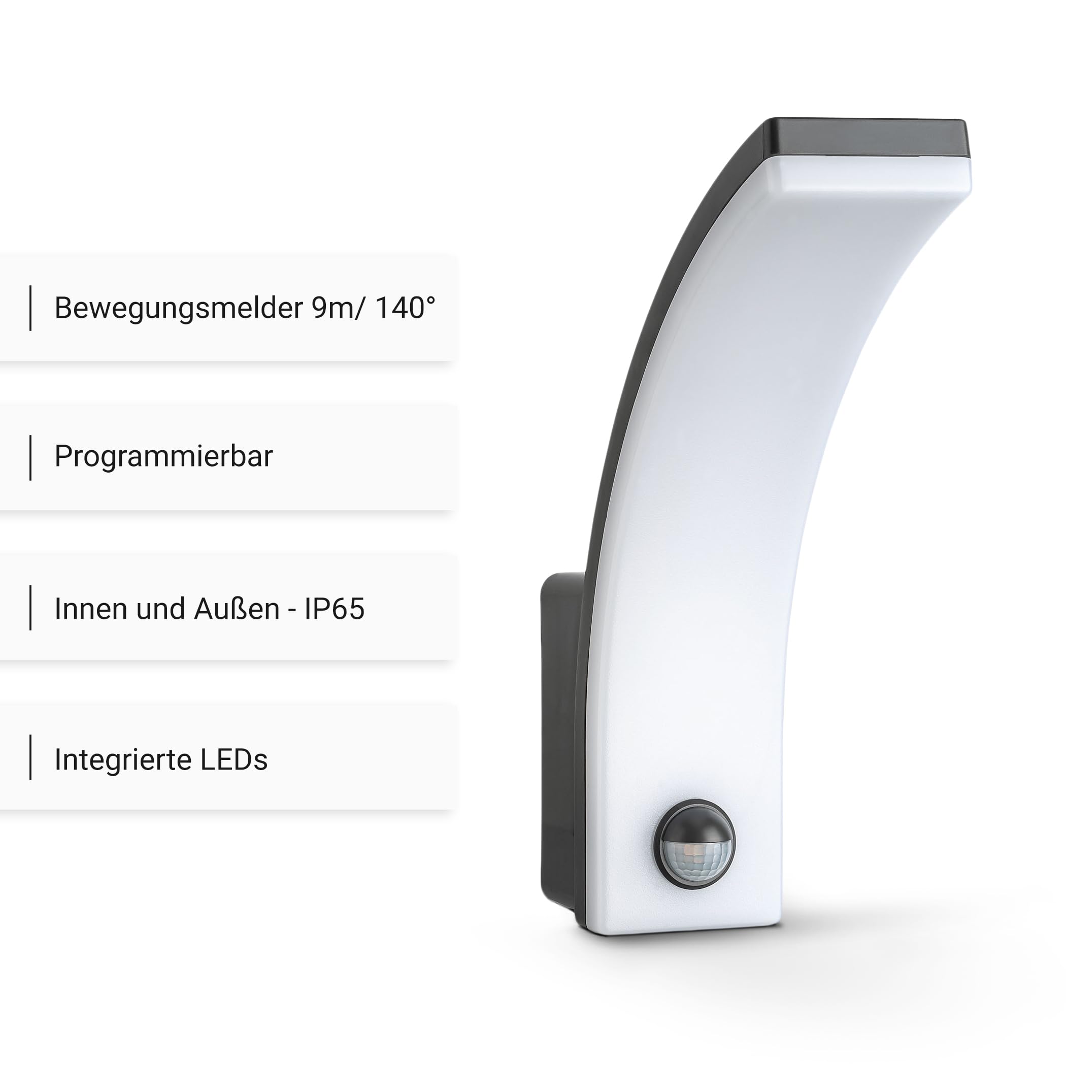 SEBSON lampa zewnętrzna z czujnikiem ruchu i wbudowanymi, niewymiennymi diodami LED, o stopniu ochrony IP65.