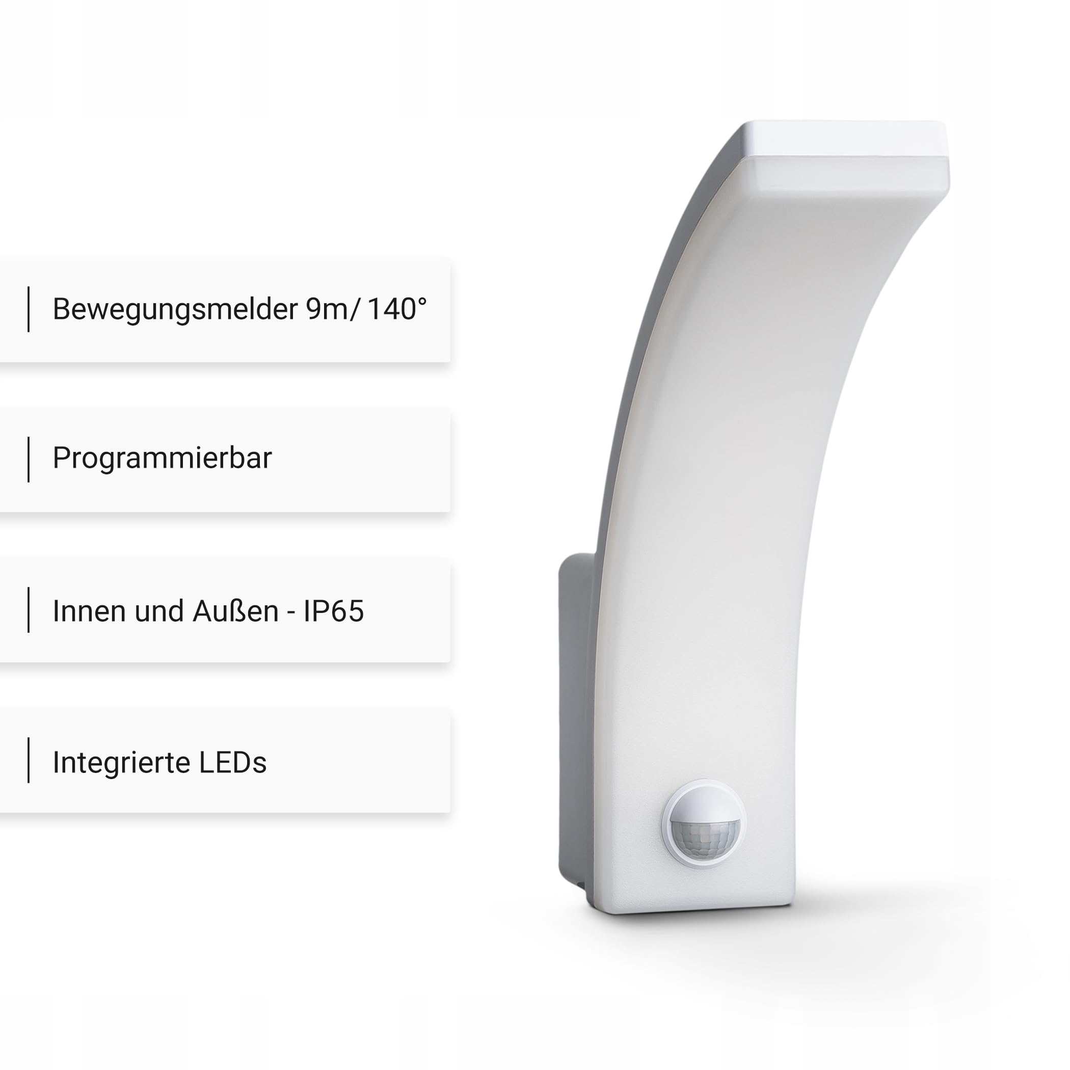 SEBSON lampa zewnętrzna z czujnikiem ruchu i wbudowanymi, niewymiennymi diodami LED, o stopniu ochrony IP65.