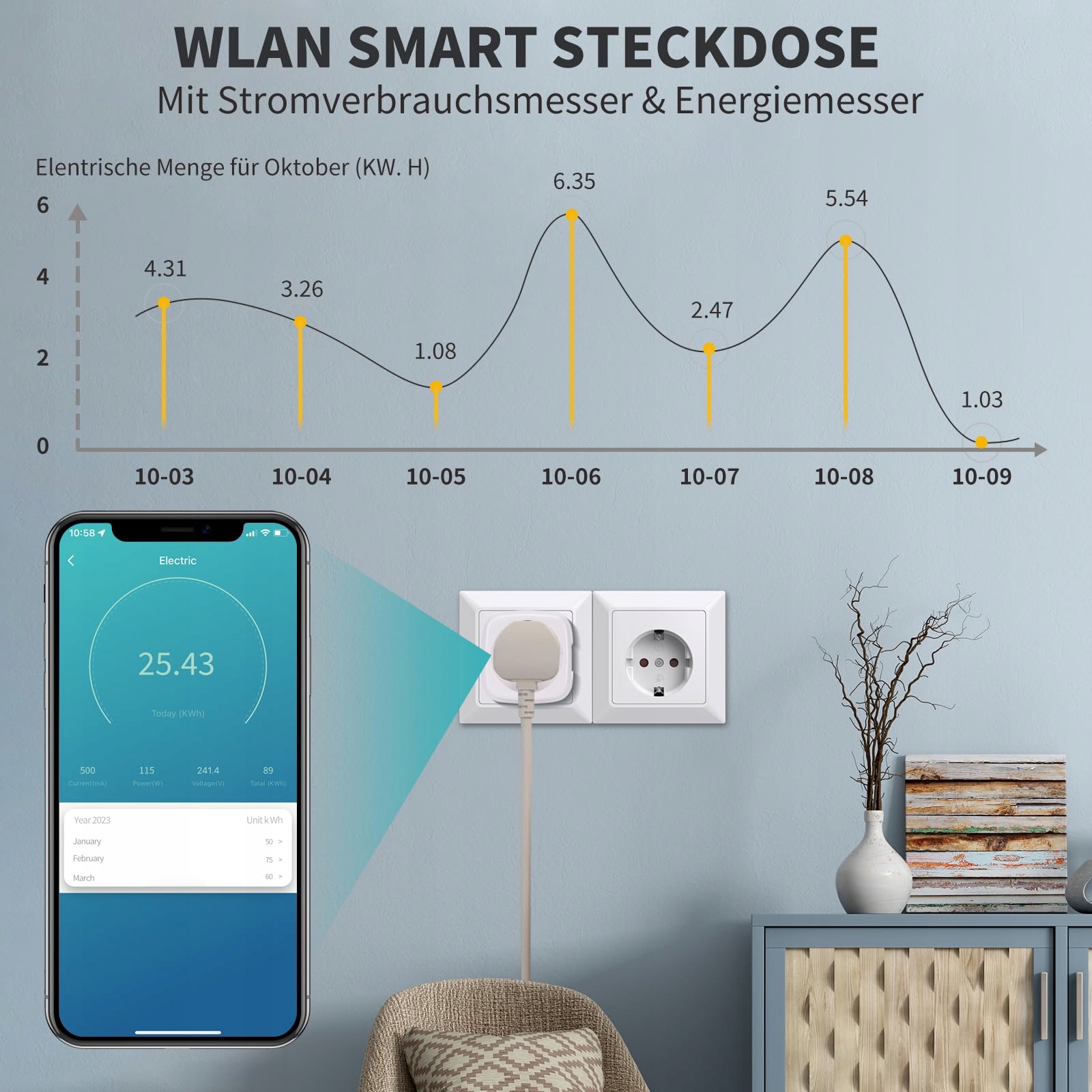 WLAN inteligentny timer gniazdka, SEC 24 gniazdko Alexa z licznikiem energii dla gniazdek, sterowanie głosowe z Alexą i Google Assistant, zdalne sterowanie aplikacją. Timer/Harmonogram, miernik energii.