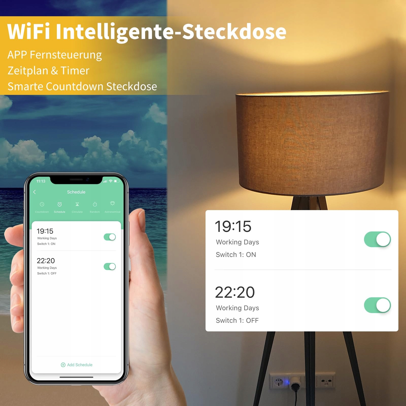 【Harmonogram i timer】: Twórz harmonogramy/timery, aby automatycznie włączać/wyłączać swoje urządzenie (np. oświetlenie) za pomocą gniazdka z timerem WLAN o wybranej porze. Obsługiwane są ustawienia wschodu i zachodu słońca. Wyłącz wszystkie urządzenia w trybie czuwania, oszczędzaj energię, oszczędzaj pieniądze.