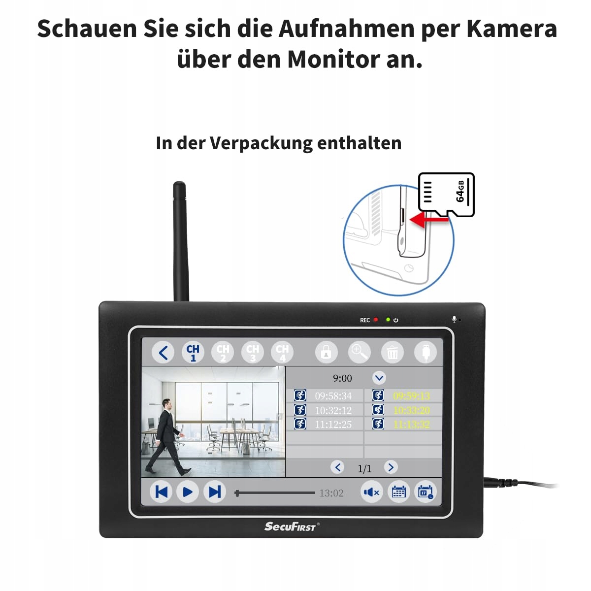 SECUFIRST Kamera Zewnętrzna 2K Zestaw z 7 Calowym Monitorem Dotykowym