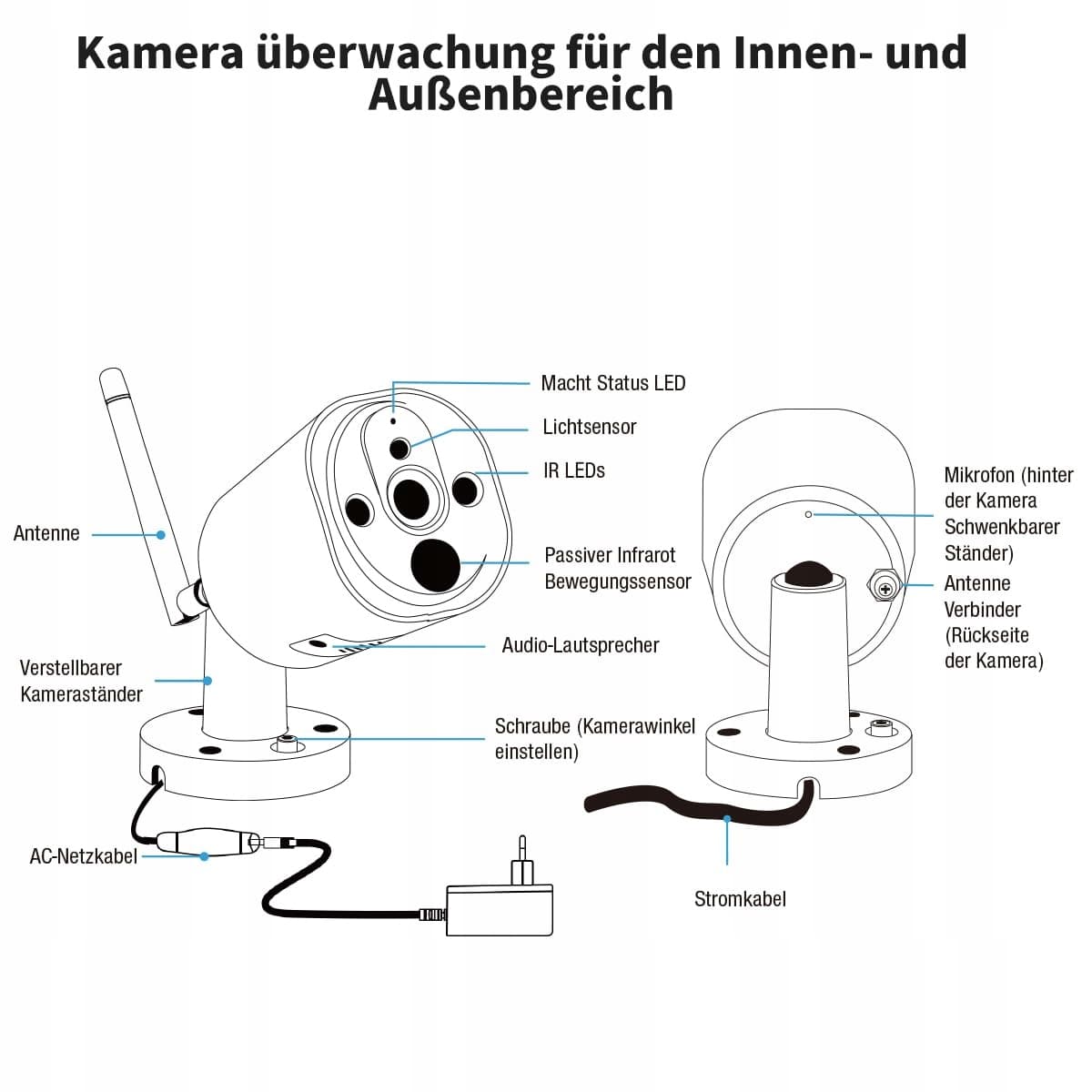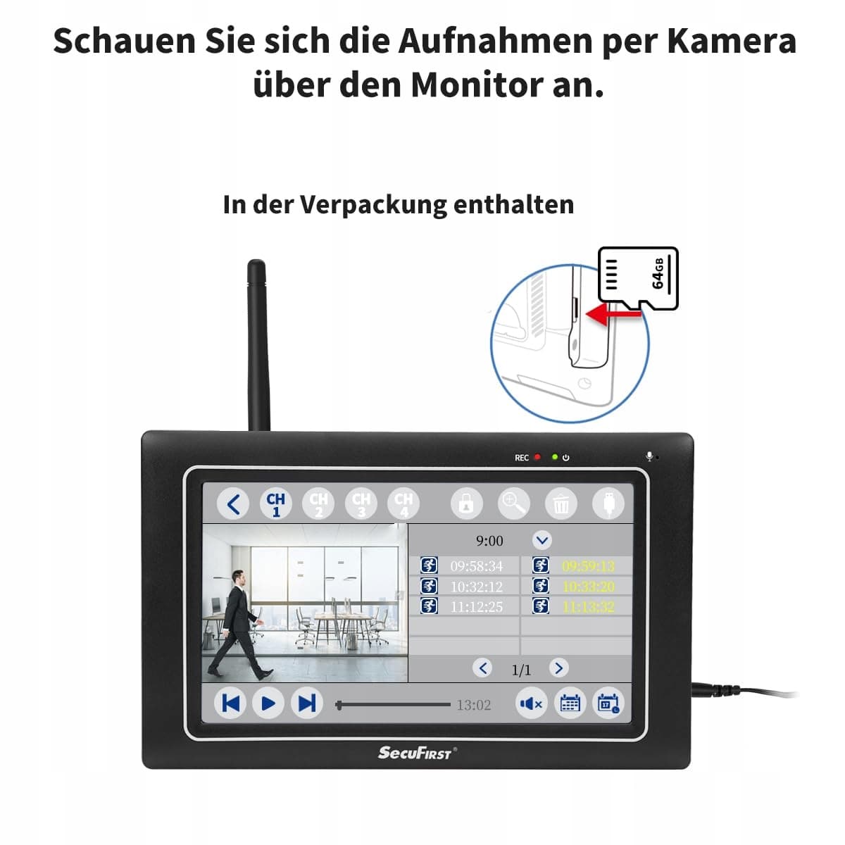Bez internetu/Wi-Fi/telefonu/technicznej wiedzy możesz również korzystać z tego bezprzewodowego zestawu NVR. Kamery monitoringu wewnątrz i na zewnątrz zostały już sparowane z monitorem po włączeniu, nawet bez internetu. Wideo na żywo można oglądać na monitorze po kilku sekundach. Zasięg: na otwartej przestrzeni 300 metrów. Zasięg zmniejsza się, gdy pomiędzy są ściany/okna. Nie montuj kamery w pobliżu metalowych przedmiotów!
