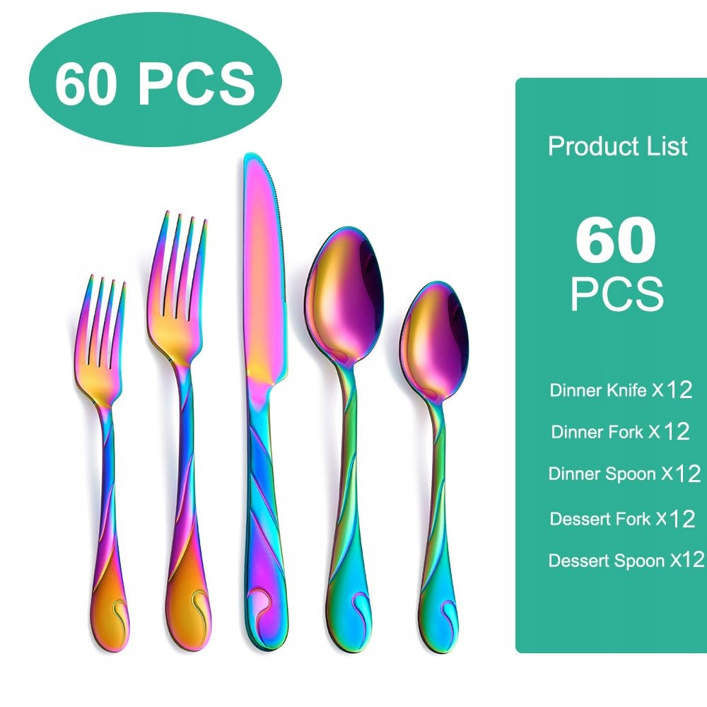 SEESHINE Zestaw Sztućców Tęczowych 60 Elementów Stal Nierdzewna Dla 12 Osób