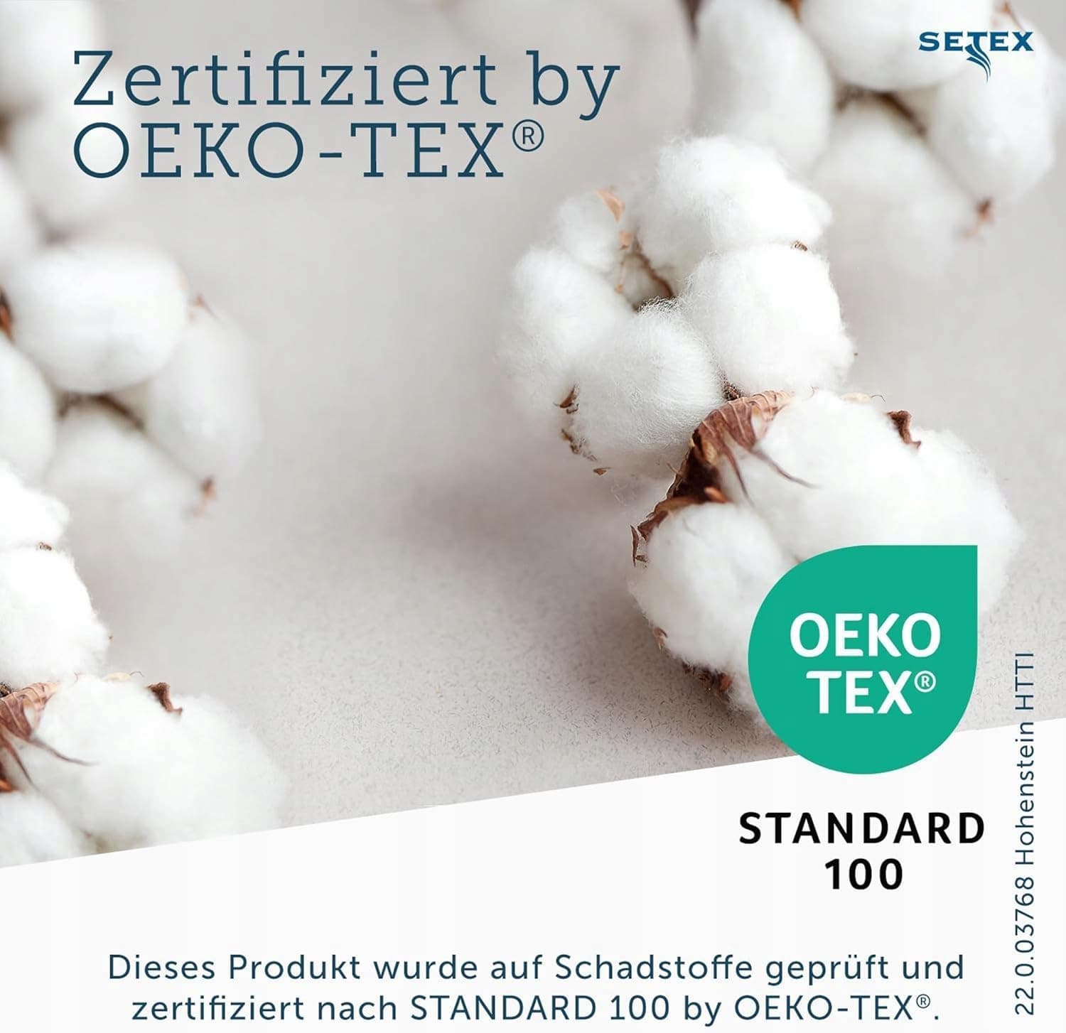 Jakość Made in Germany: Przebadane pod kątem substancji szkodliwych - STANDARD 100 by OEKO-TEX (Nr certyfikatu: 07.0.49905 / Instytut badawczy: Hohenstein)