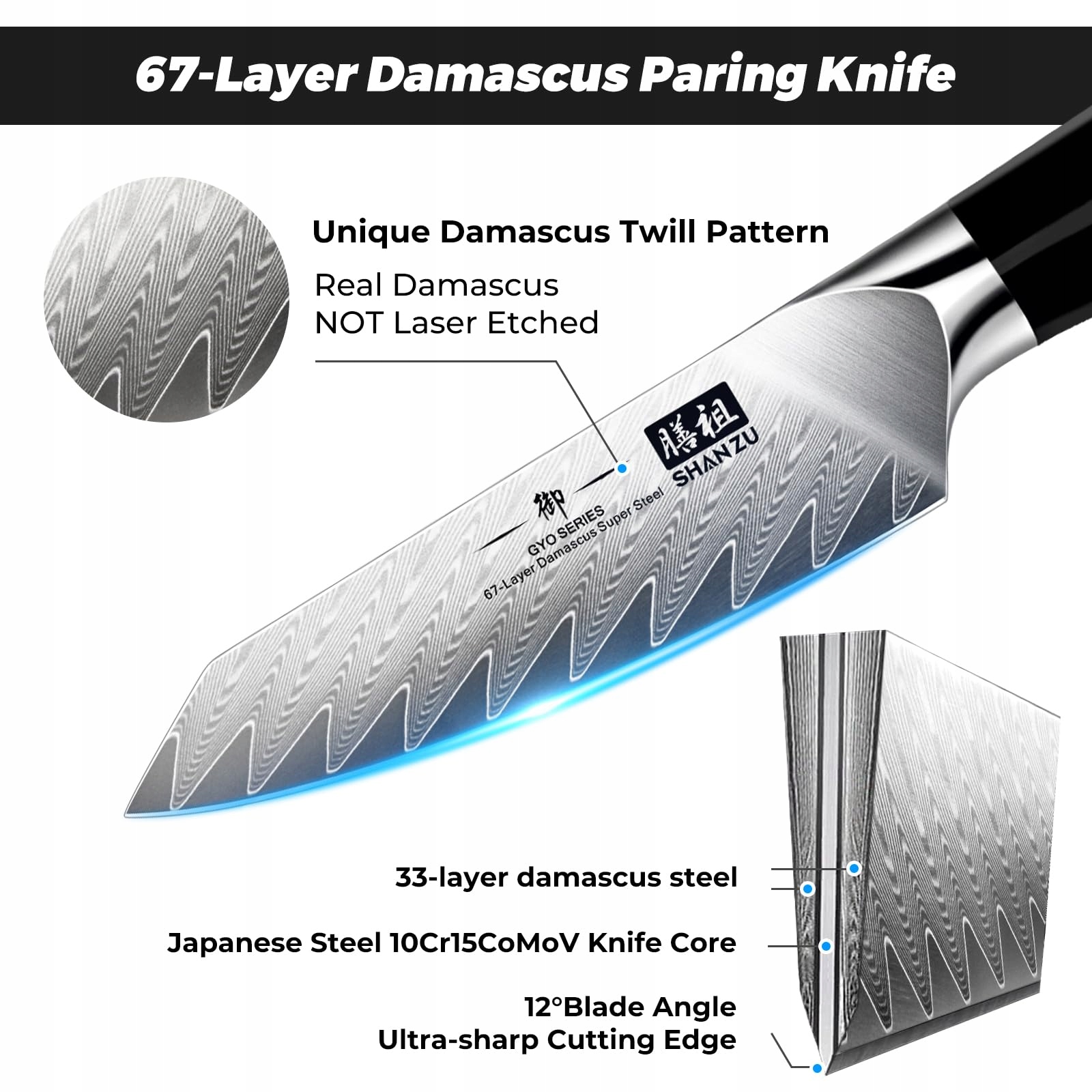 SHAN ZU Nóż Do Obierania Damastowy 9,3 cm Ostry Nóż Kuchenny GYO Series | Premium Supply