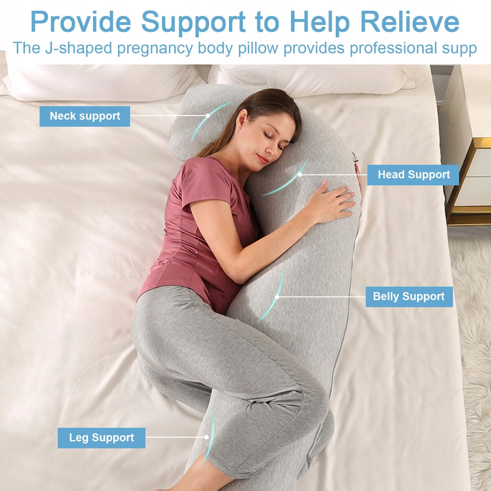 ✅ Wszechstronne możliwości użycia - Elastyczność poduszki ciążowej w kształcie litery J umożliwia różne pozycje, nie zajmując zbyt dużo miejsca. Idealnie nadaje się do karmienia, oglądania telewizji, czytania lub wsparcia różnych obszarów ciała.
