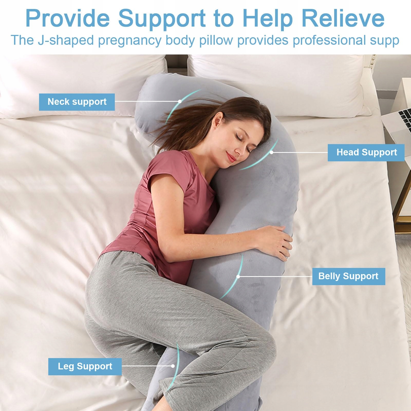 ✅ Wszechstronne możliwości użytkowania - Elastyczność poduszki ciążowej w kształcie litery J umożliwia różne pozycje, nie zajmując zbyt dużo miejsca. Idealnie nadaje się do karmienia, oglądania telewizji, czytania lub wspierania różnych obszarów ciała.