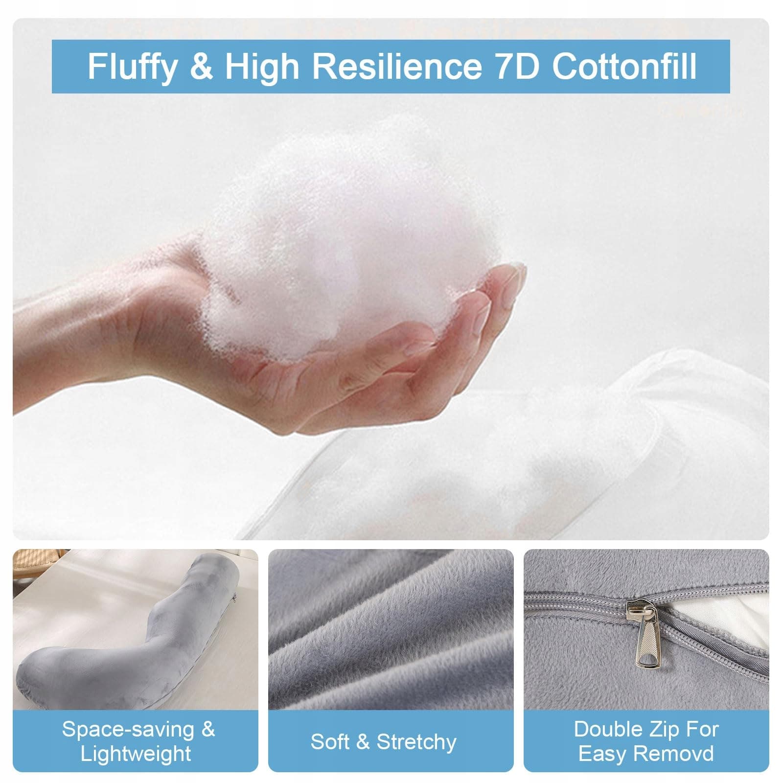 ✅ Komfort przypominający chmurę - Poduszka ciążowa wypełniona jest wysokiej jakości bawełną 7D-PP, oferując idealną równowagę między komfortem a wsparciem dla całego ciała, zapewnia spokojny sen bez przewracania się i kręcenia. Nawet przy dłuższym użytkowaniu zachowuje swój kształt i gwarantuje długotrwały komfort.