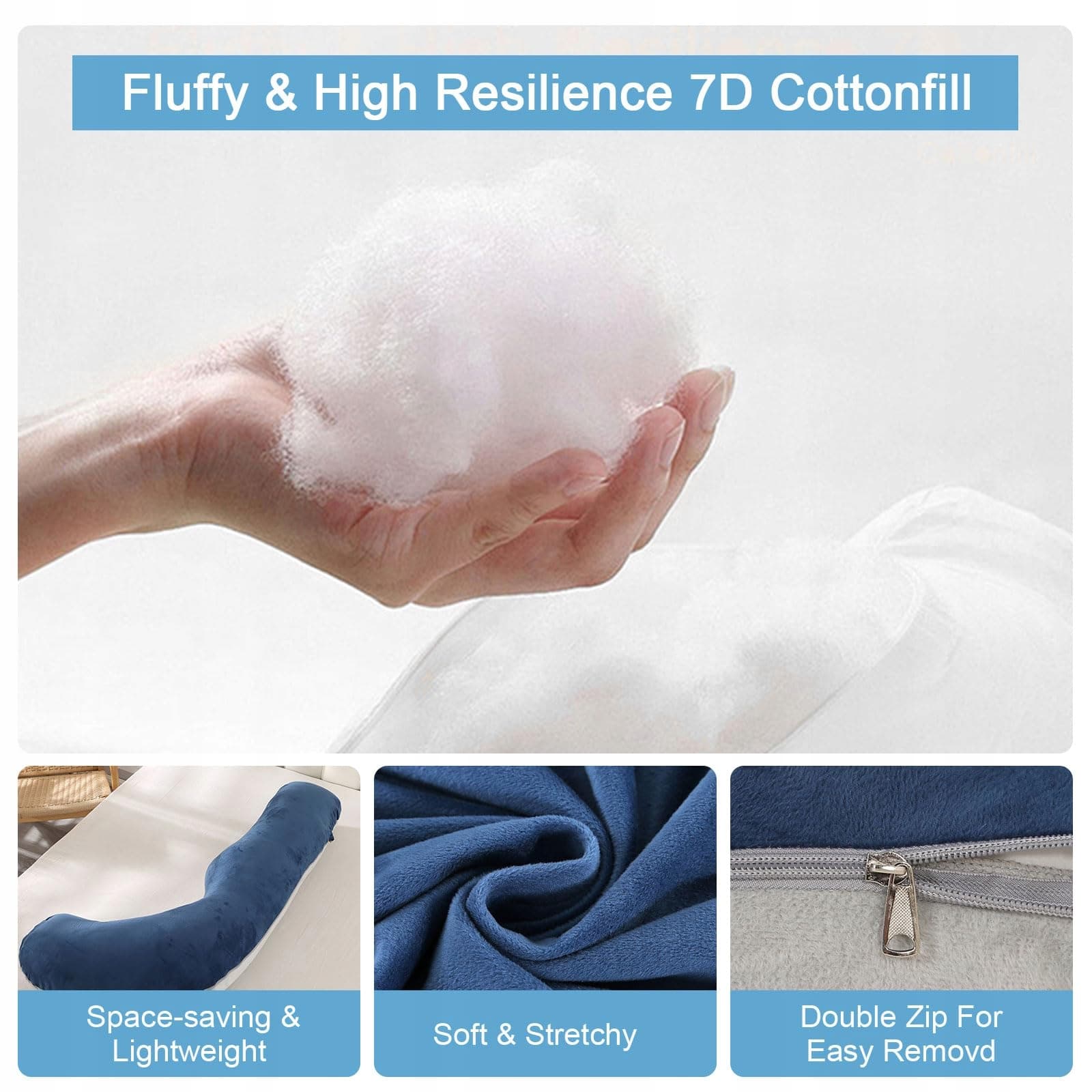 ✅ Komfort przypominający chmurę - Poduszka ciążowa wypełniona jest wysokiej jakości bawełną 7D-PP, co zapewnia doskonałą równowagę między komfortem a wsparciem dla całego ciała, gwarantując spokojny sen bez przewracania się i kręcenia. Nawet przy dłuższym użytkowaniu zachowuje swój kształt i gwarantuje długotrwały komfort.