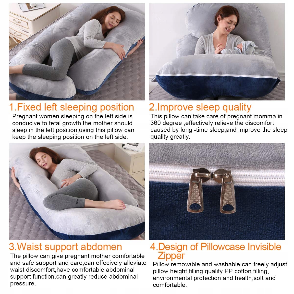 Poduszka ciążowa SHANNA w kształcie U XXL, duża poduszka do karmienia, poduszka dla śpiących na boku, poduszka ciała w kształcie U z zdejmowanym i pralnym pokrowcem, 70 * 145CM Poduszki ciążowe