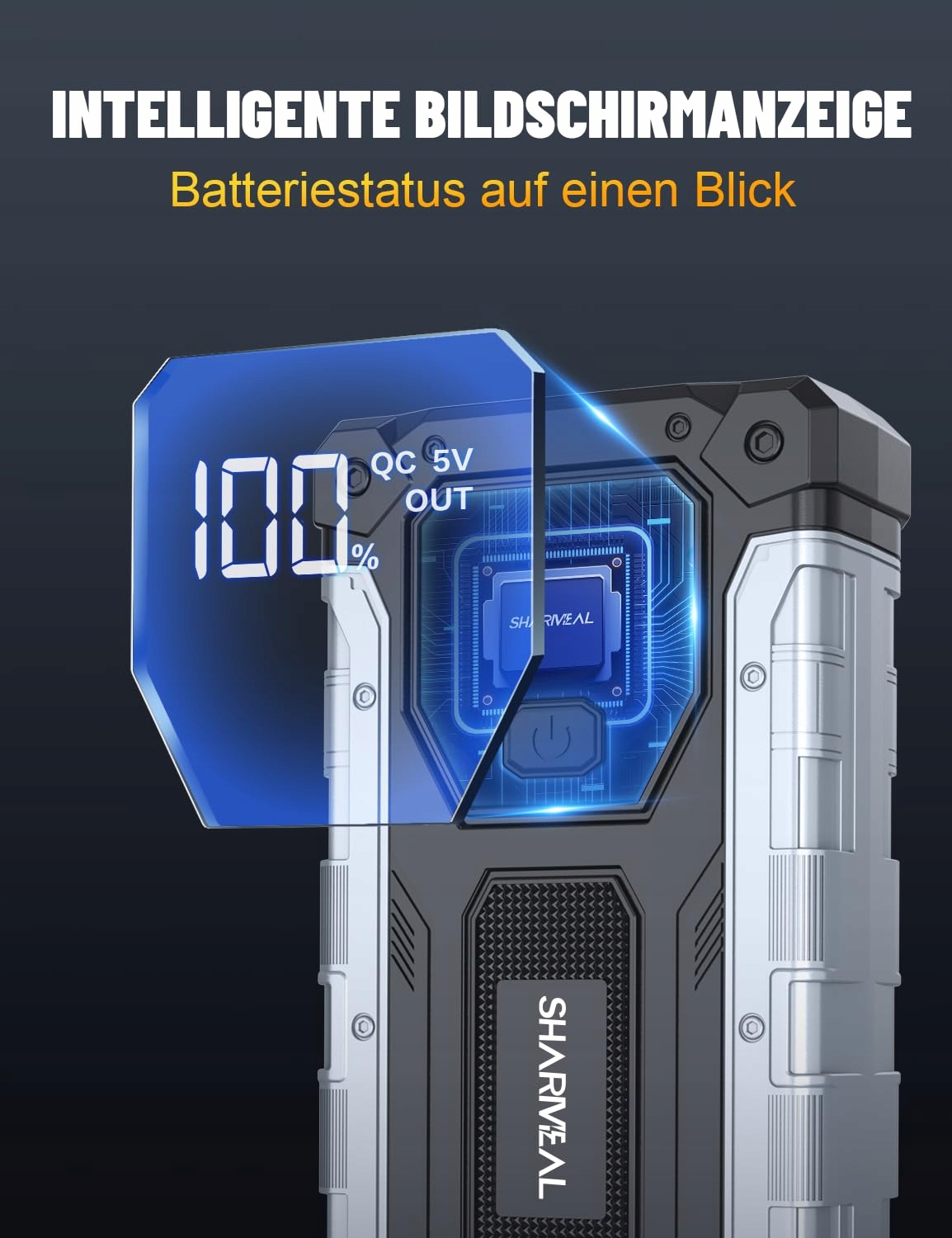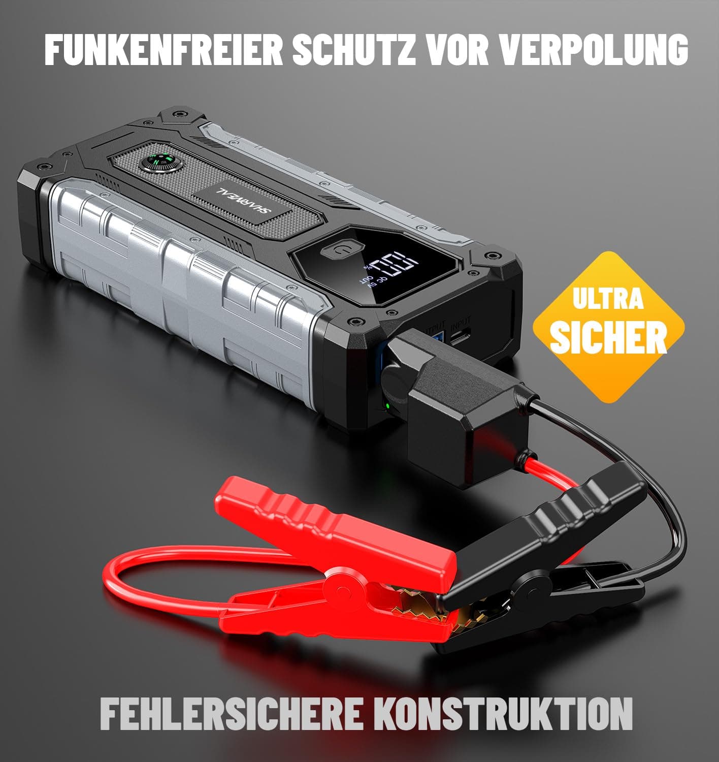 SHARMEAL Booster Samochodowy 6000A Rozrusznik 12V Ekran LCD LED 3 Tryby | Premium Supply