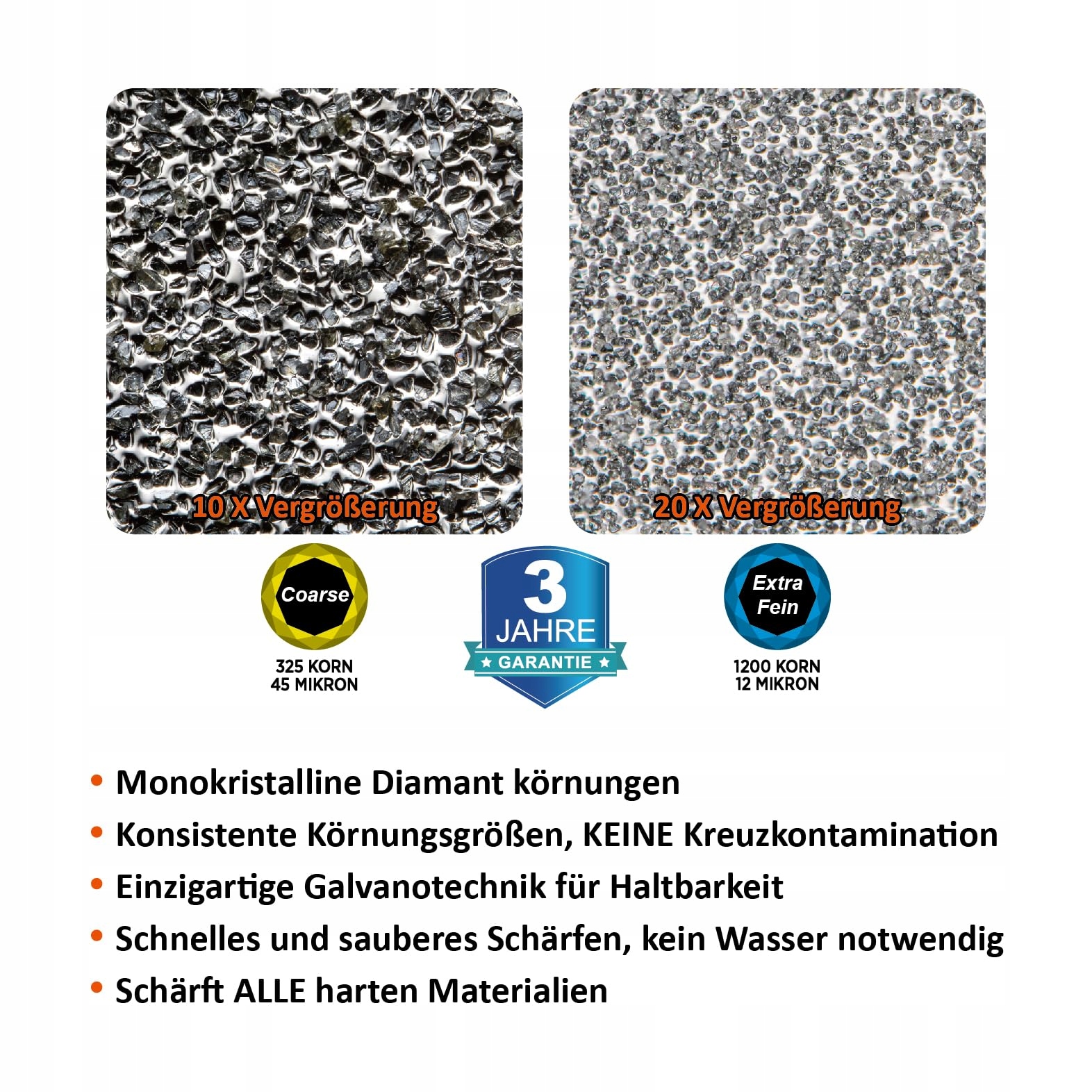 SZYBKA, trwała: Przemysłowe monokrystaliczne diamenty są galwanicznie osadzone na stalowej podstawie. Ostrzenie do 5 razy szybciej niż kamień olejowy, kamień wodny