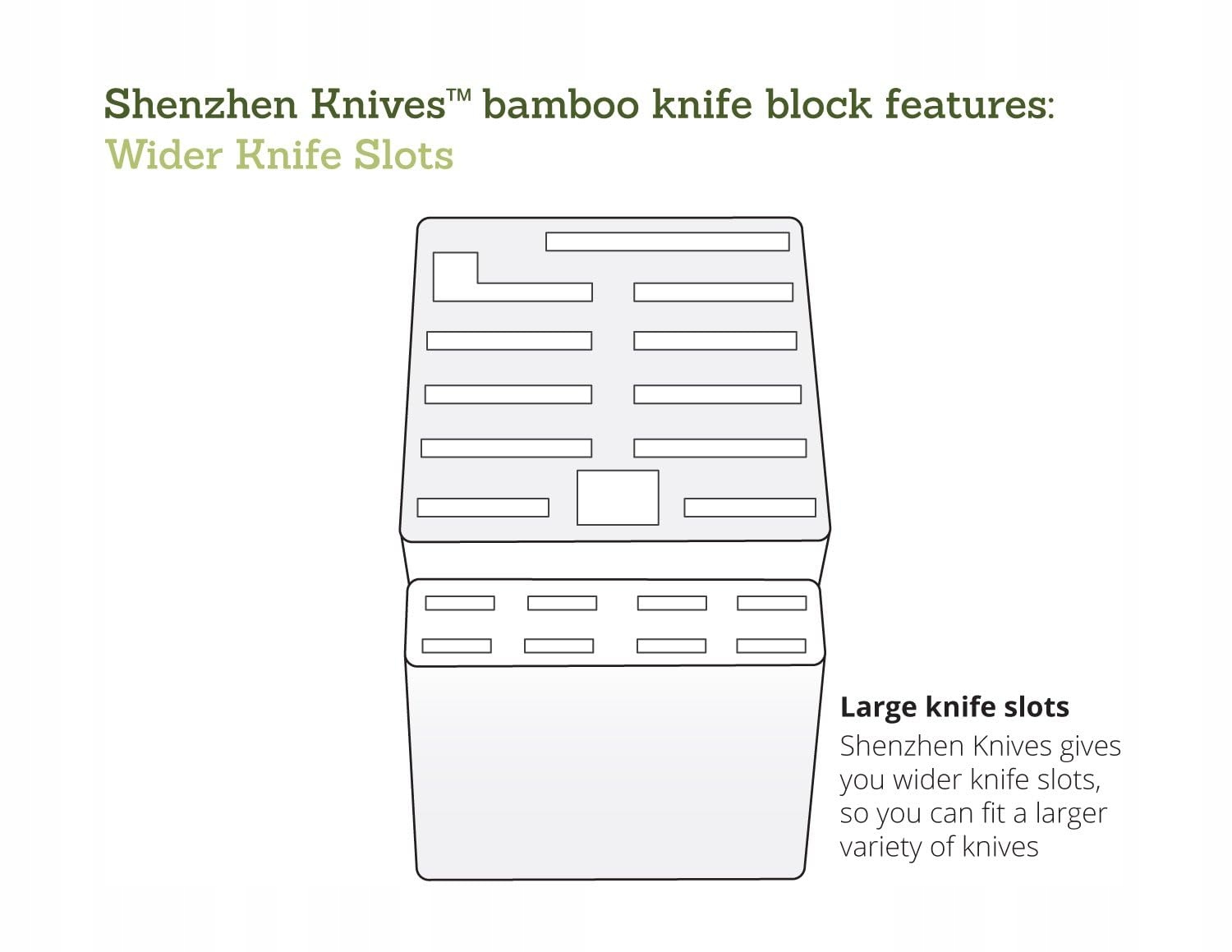 Uniwersalny blok na noże z 20 szczelinami: Duży blok na noże z drewna bambusowego Shenzhen bez noży - blok rzeźnicki, stojak i organizer na noże z szerokimi szczelinami do łatwego przechowywania noży kuchennych