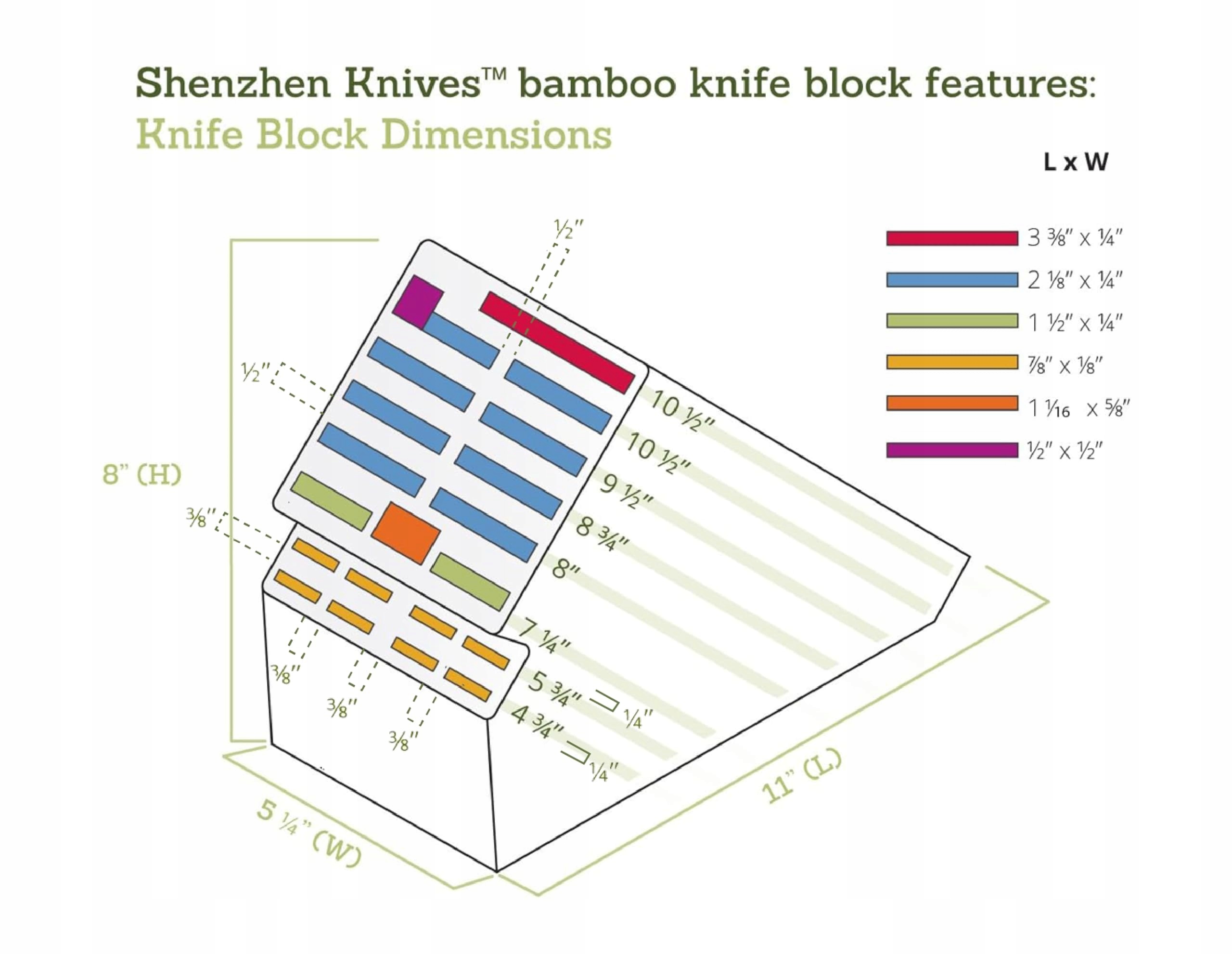 SZEROKO ZAAWANSOWANE OTWORY: Pionowe szczeliny chronią ostrza i mają szersze otwory, aby ułatwić obsługę i pomieścić wszystko, od mniejszych noży do steków po większe noże kuchenne