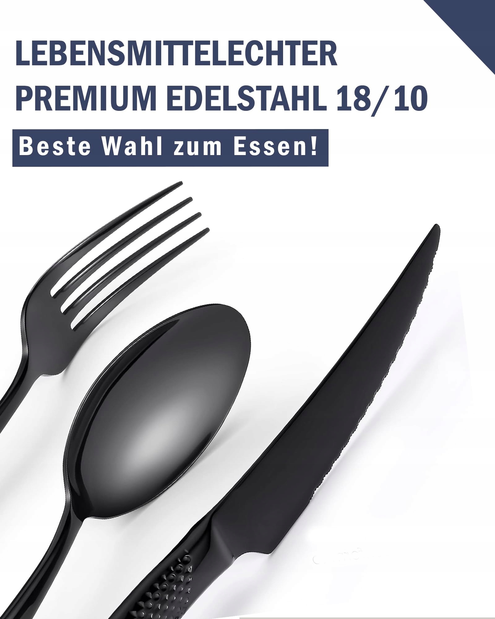 SHEUMNT 24 Częściowy Zestaw Sztućców Czarny Stal Nierdzewna Dla 6 Osób | Premium Supply