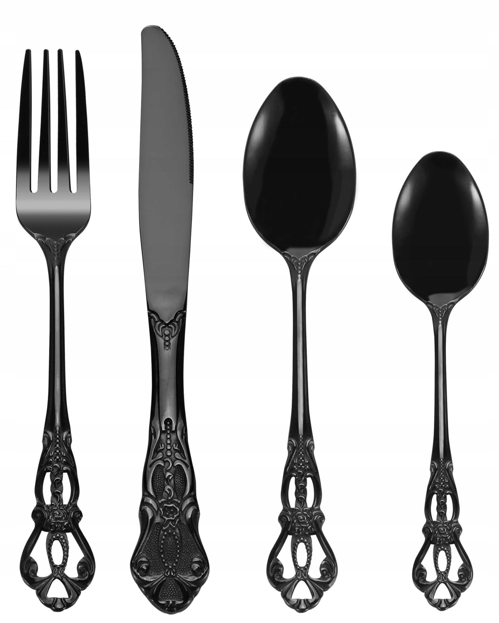 SHEUMNT Retro Czarny Zestaw Sztućców 24 Elementy Dla 6 Osób Stal Nierdzewna | Premium Supply