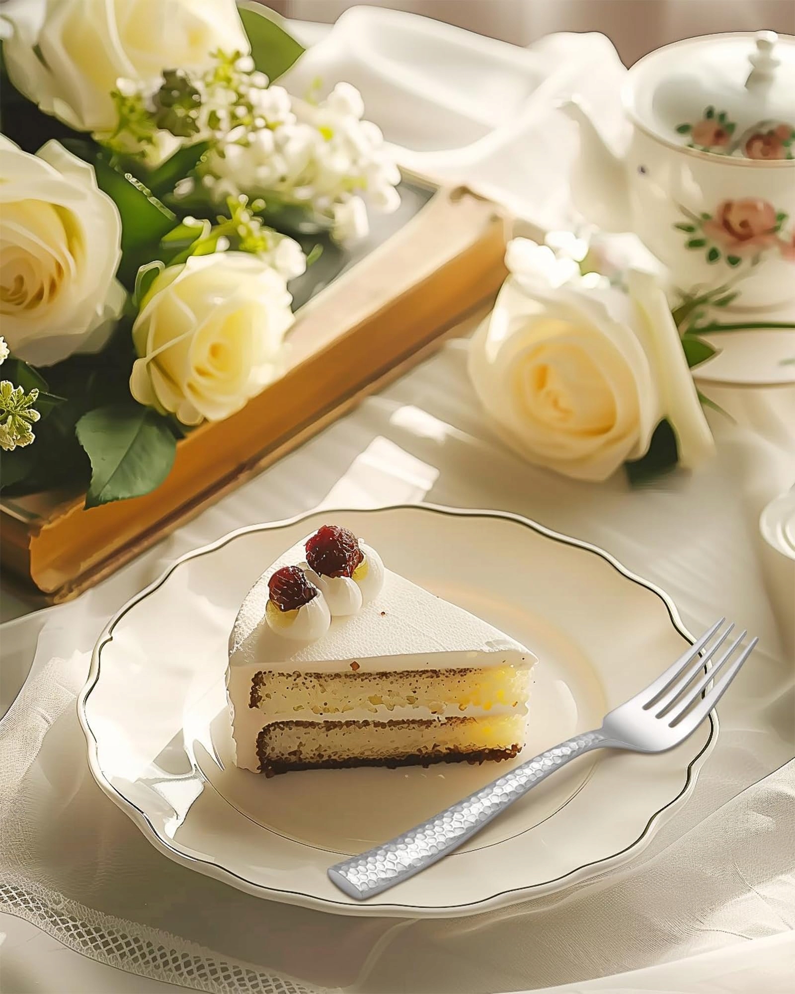 SHEUMNT Srebrny Młotkowany Zestaw Sztućców 24 Części Stal Nierdzewna 6 Osób