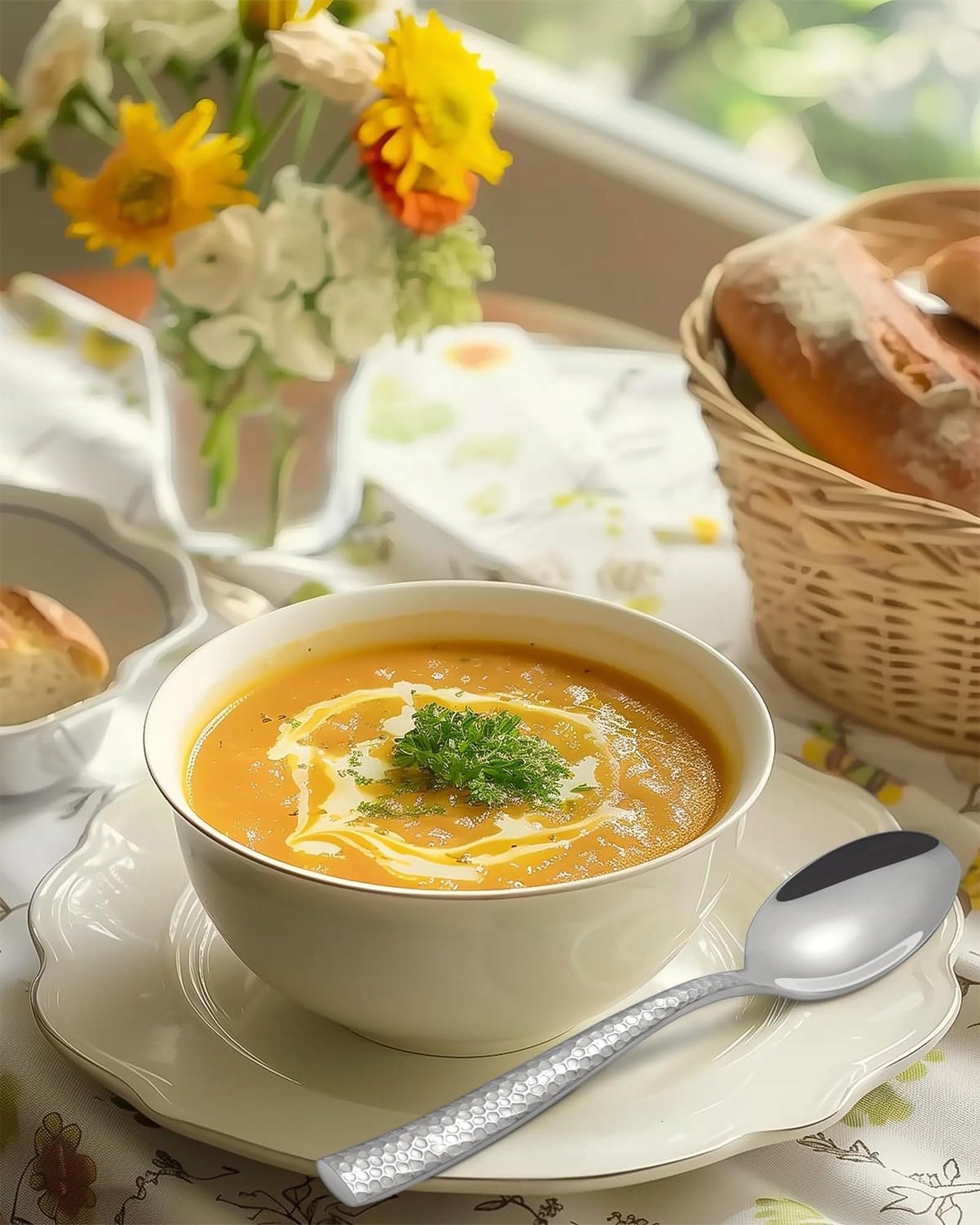 24-częściowy zestaw stołowy – Zawiera 6 widelców, 6 noży, 6 łyżek do zupy i 6 łyżeczek do deseru – idealny na sześć nakryć przy rodzinnych posiłkach lub uroczystych okazjach.