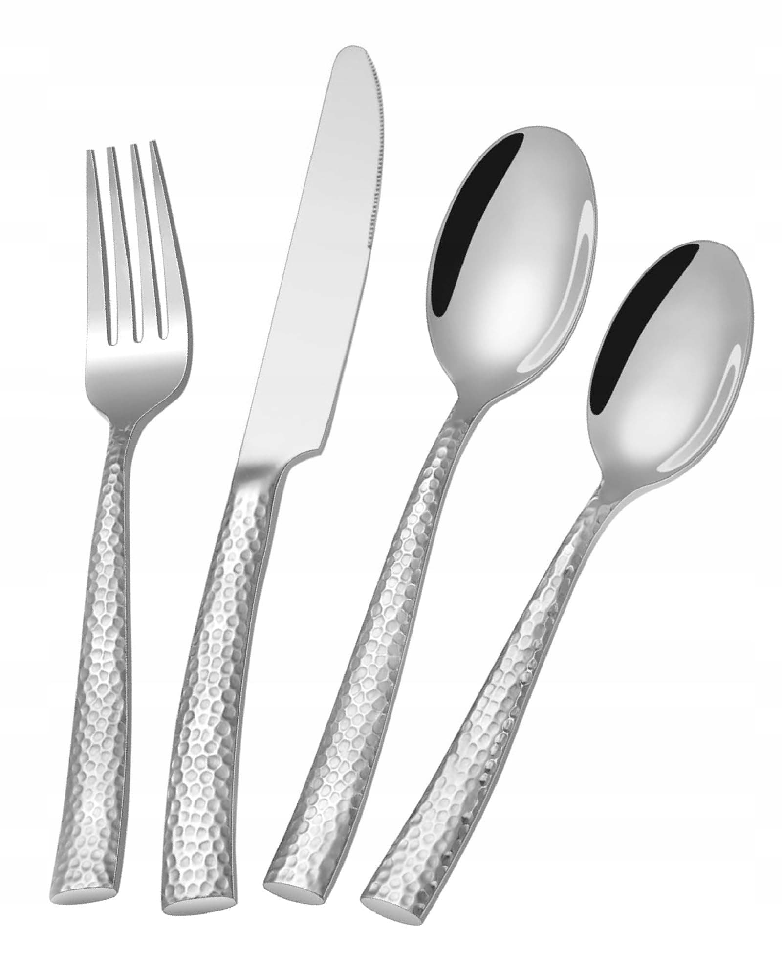 SHEUMNT srebrny zestaw sztućców młotkowanych, 24-częściowy zestaw sztućców wysokiej wydajności ze stali nierdzewnej dla 6 osób, zestaw sztućców spożywczych, zestawy lusterkowych sztućców do restauracji domowej