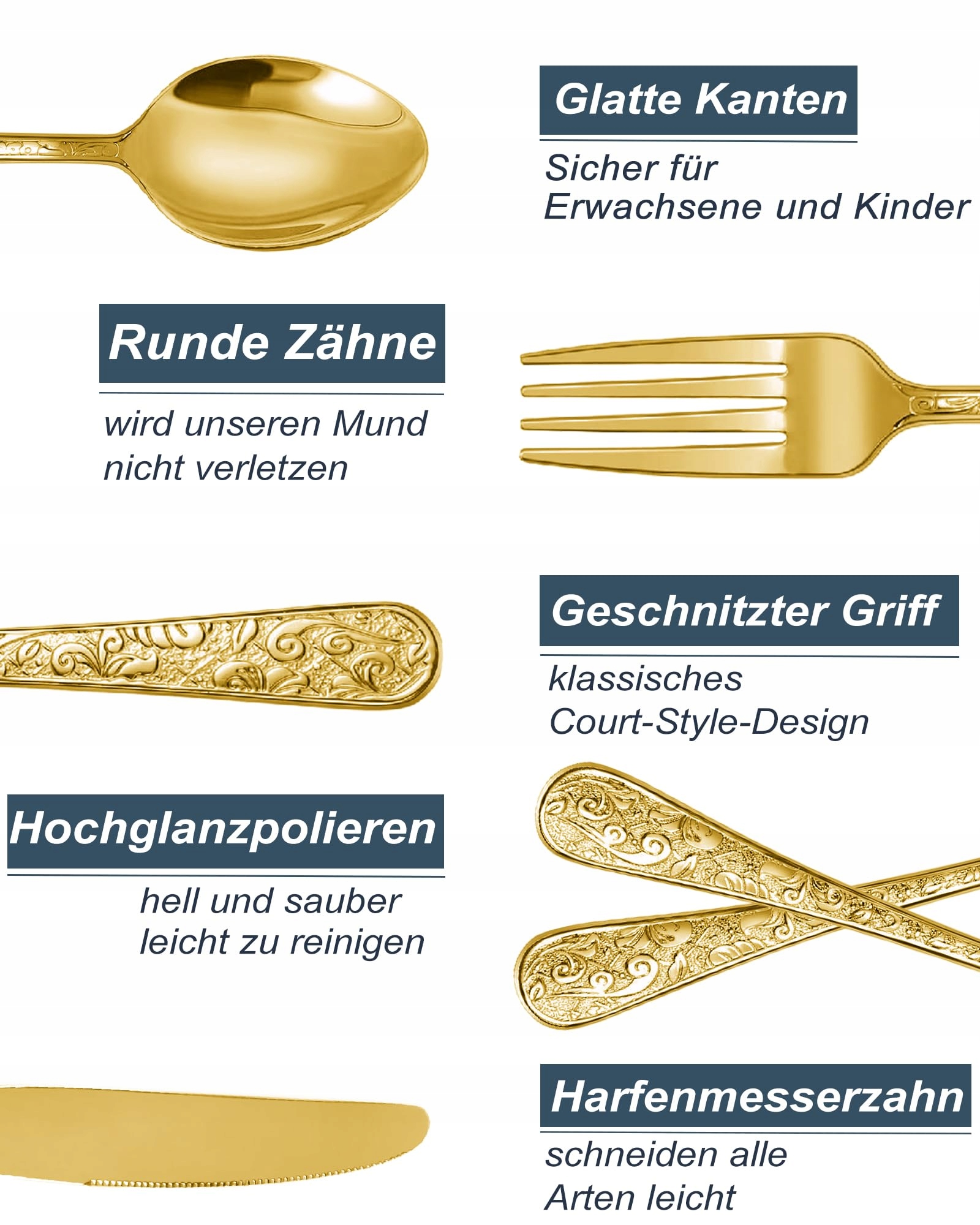 SHEUMNT 24-częściowy zestaw sztućców w stylu vintage w kolorze złotym z rzeźbieniami dla 6 osób, sztućce ze stali nierdzewnej z nożem/widelcem/łyżką, zestaw sztućców do domu i kuchni, wysoko polerowany
